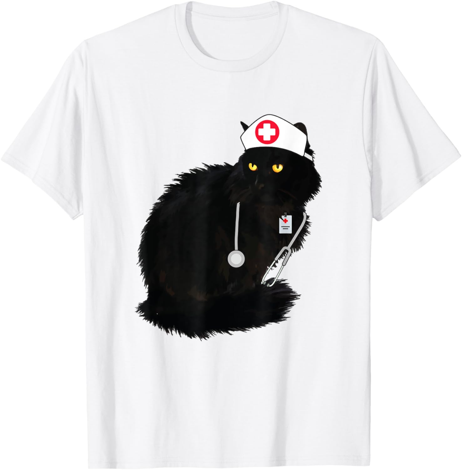 Black Cat Nurse Shirt Women Men Funny T-Shirt