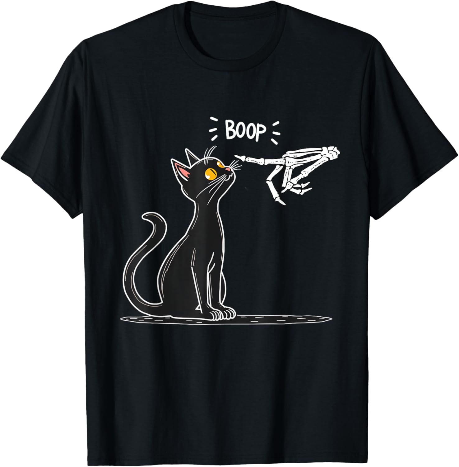 Black Cat Skeleton Hand Boop Halloween T-Shirt