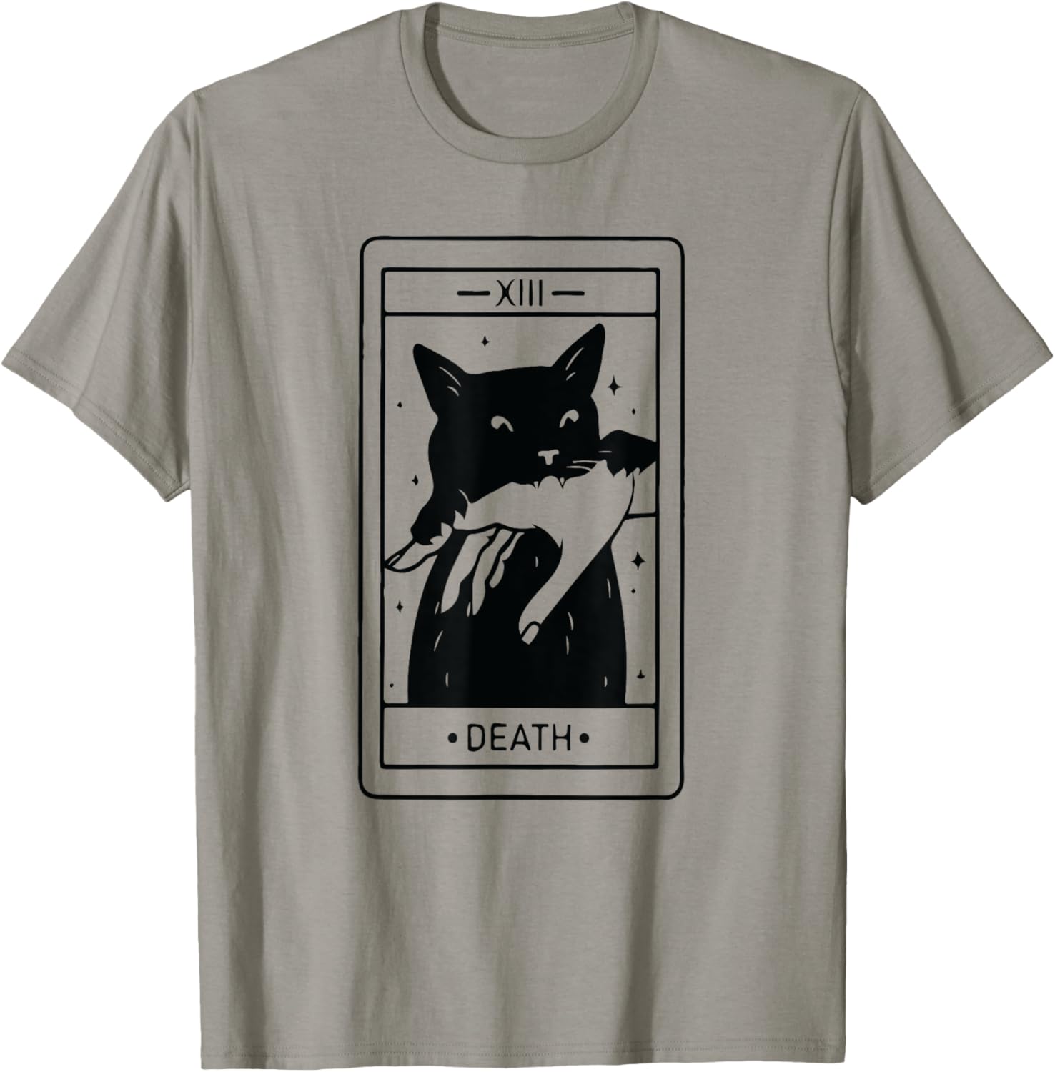Black Cat Tarot Death Halloween Witchy Cat Lover Men Women T-Shirt