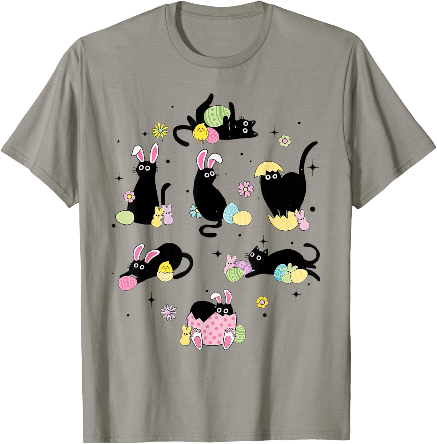 Black Cat With Bunny Eggs Happy Easter Day Matching T-Shirt