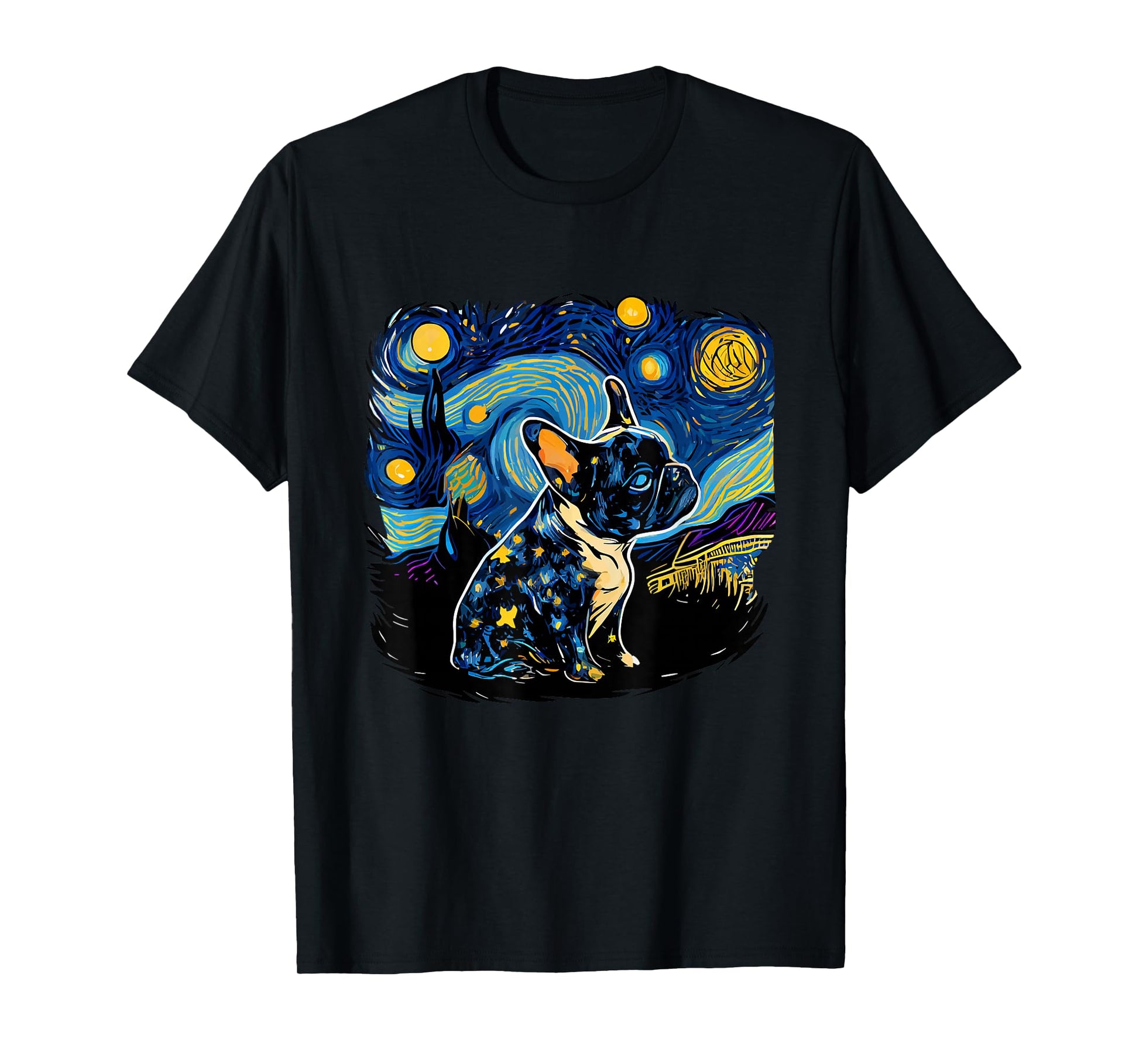 Black Frenchie French Bulldog Starry Night Van Gogh Colorful T-Shirt