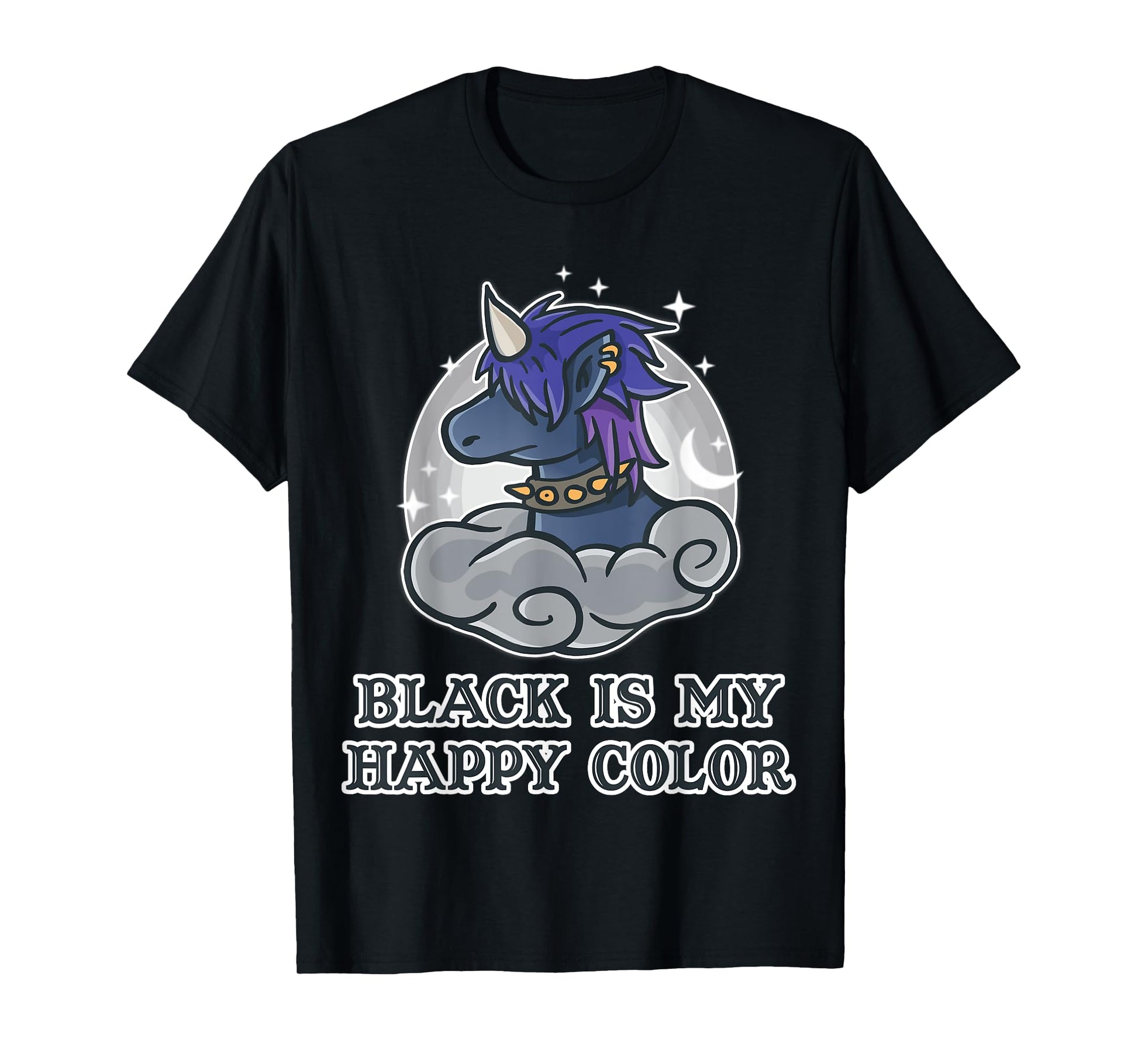 Black Is My Happy Colour Kawaii Pastel Goth Unicorn Nerd T-Shirt