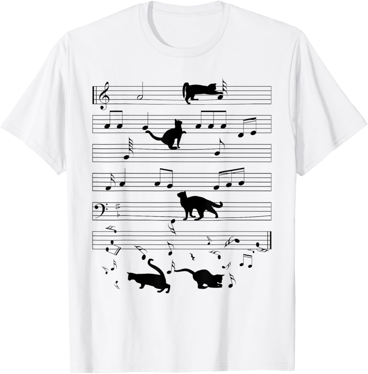 Black Cat Kitten Playing Music Note Clef Musician Boys Girls T-Shirt