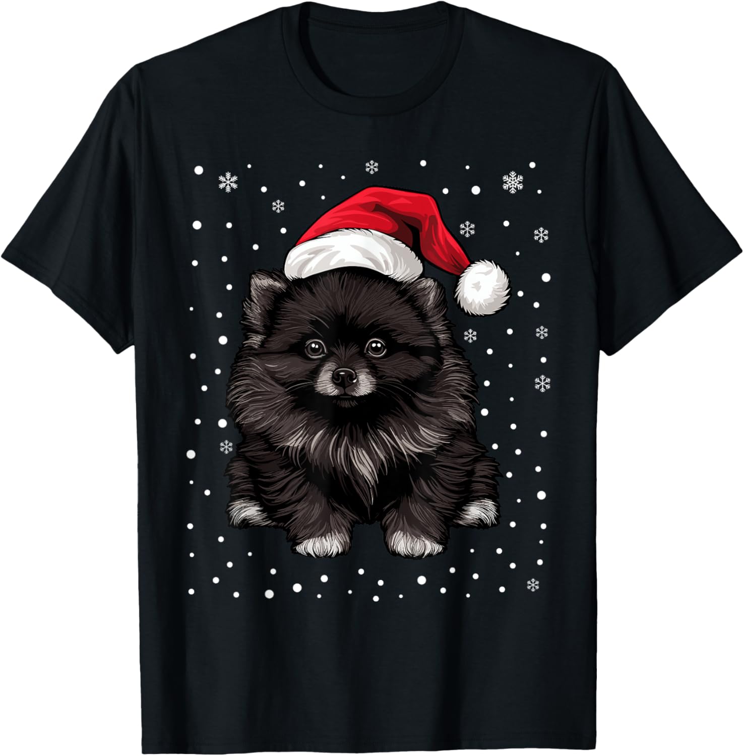Black Pomeranian Dog Christmas Santa Hat Xmas Pajama T-Shirt