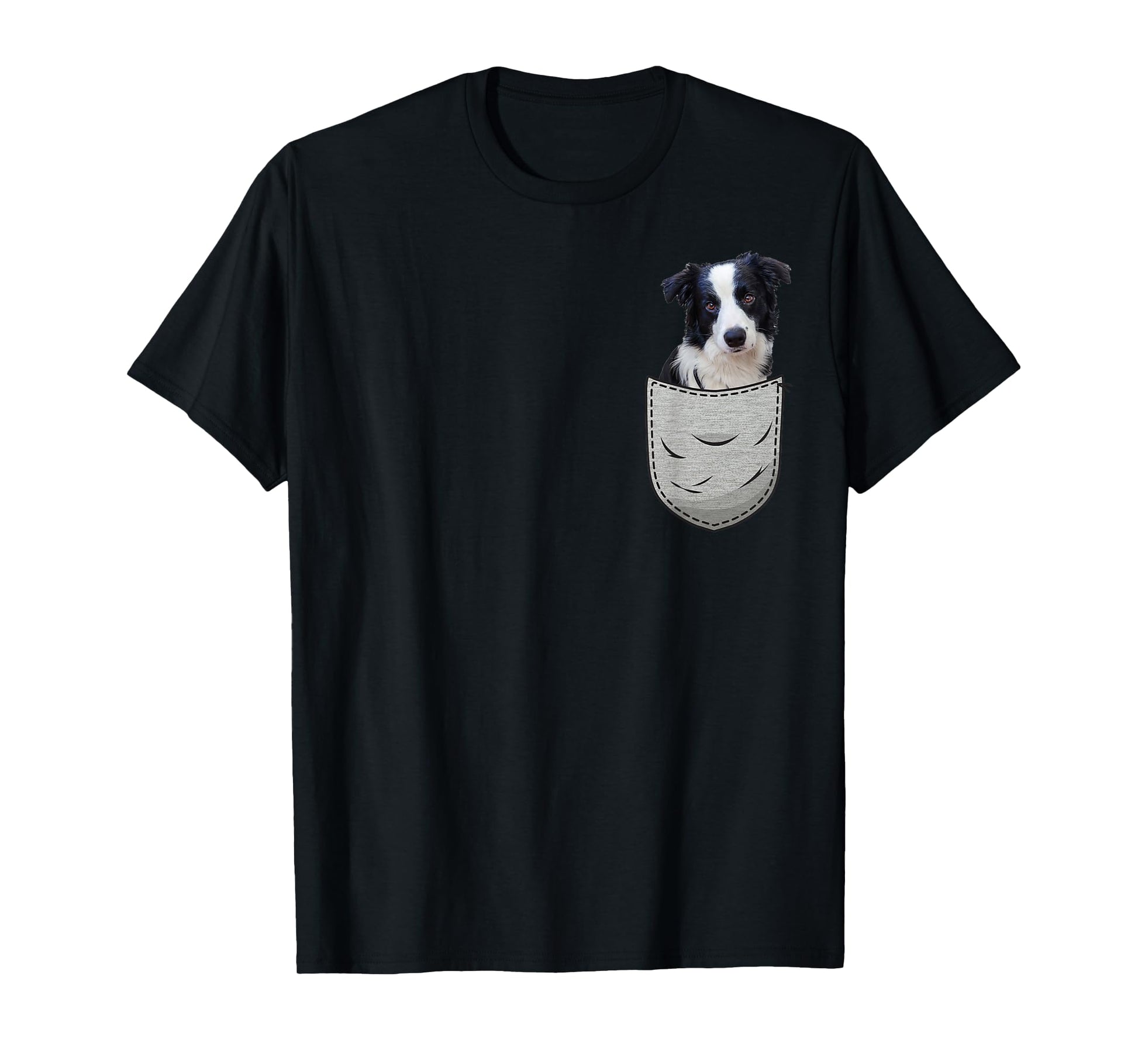 Border Collie in the chest pocket. Pocket for dog owners T-Shirt for Men Women Girls Kids
