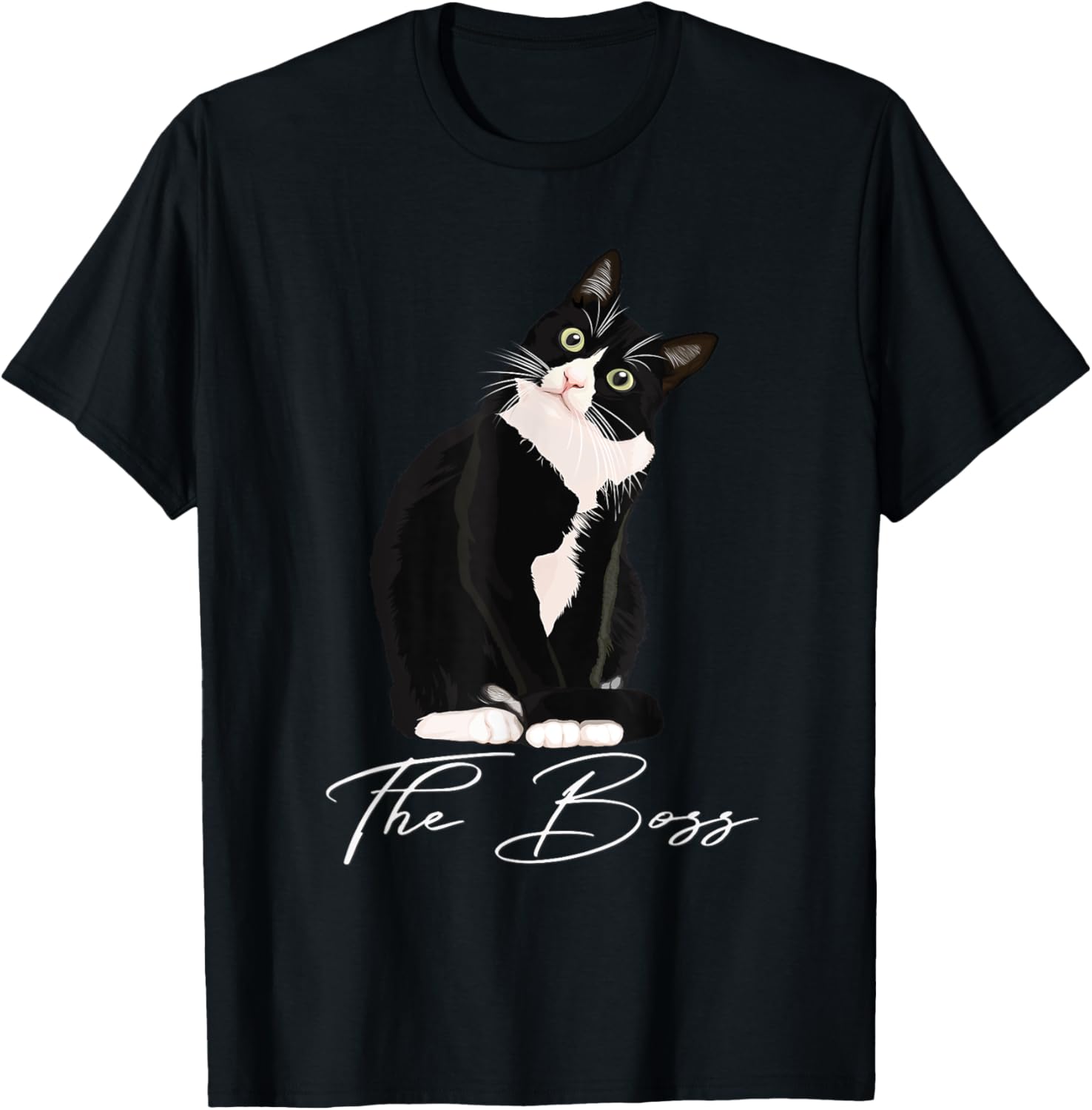 Boss Tuxedo Cat Lovers Funny Tee Shirt for Mom Dad Gift T-Shirt