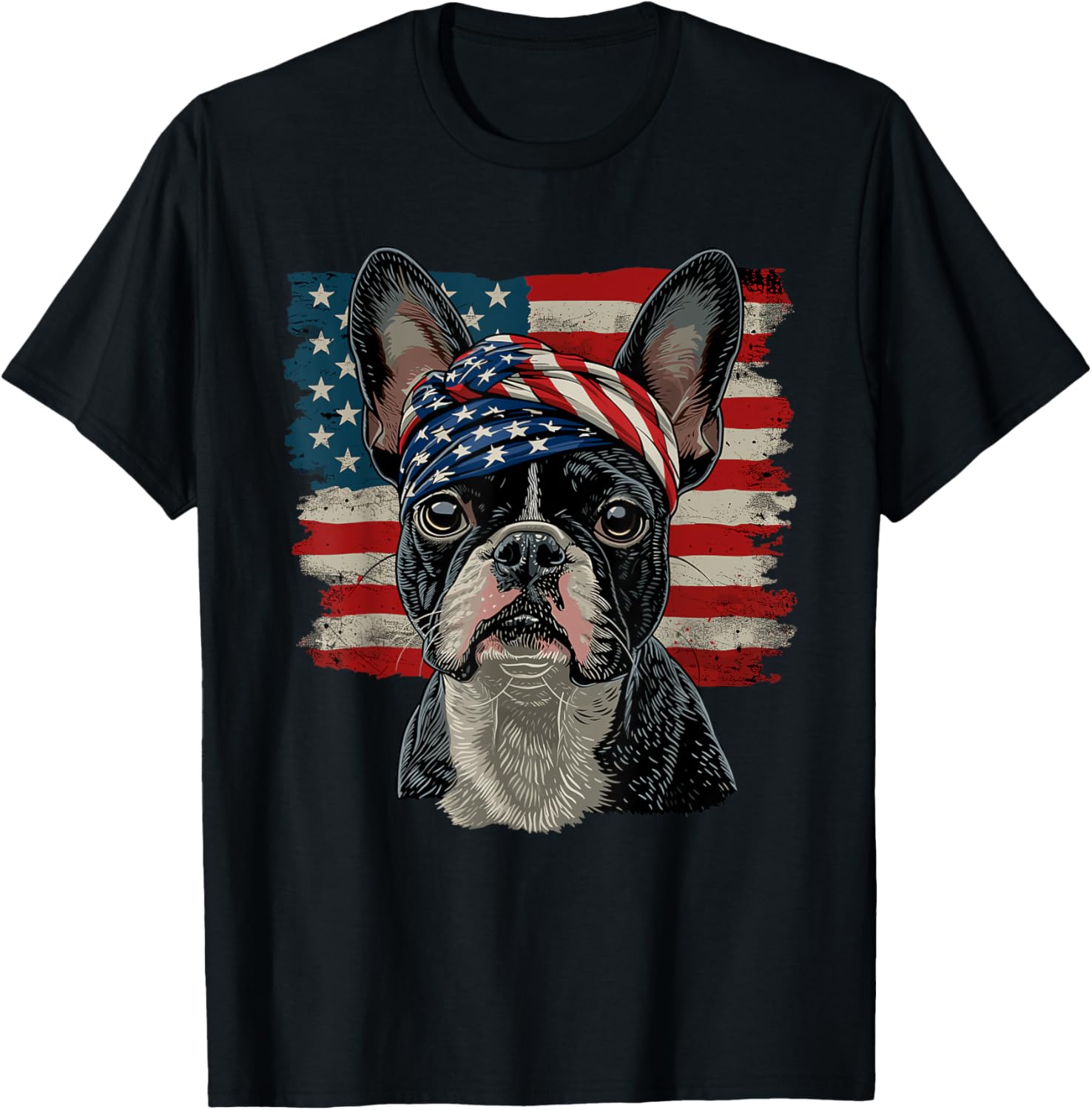 Boston Terrier Patriotic 4th Of July USA American Flag T-Shirt