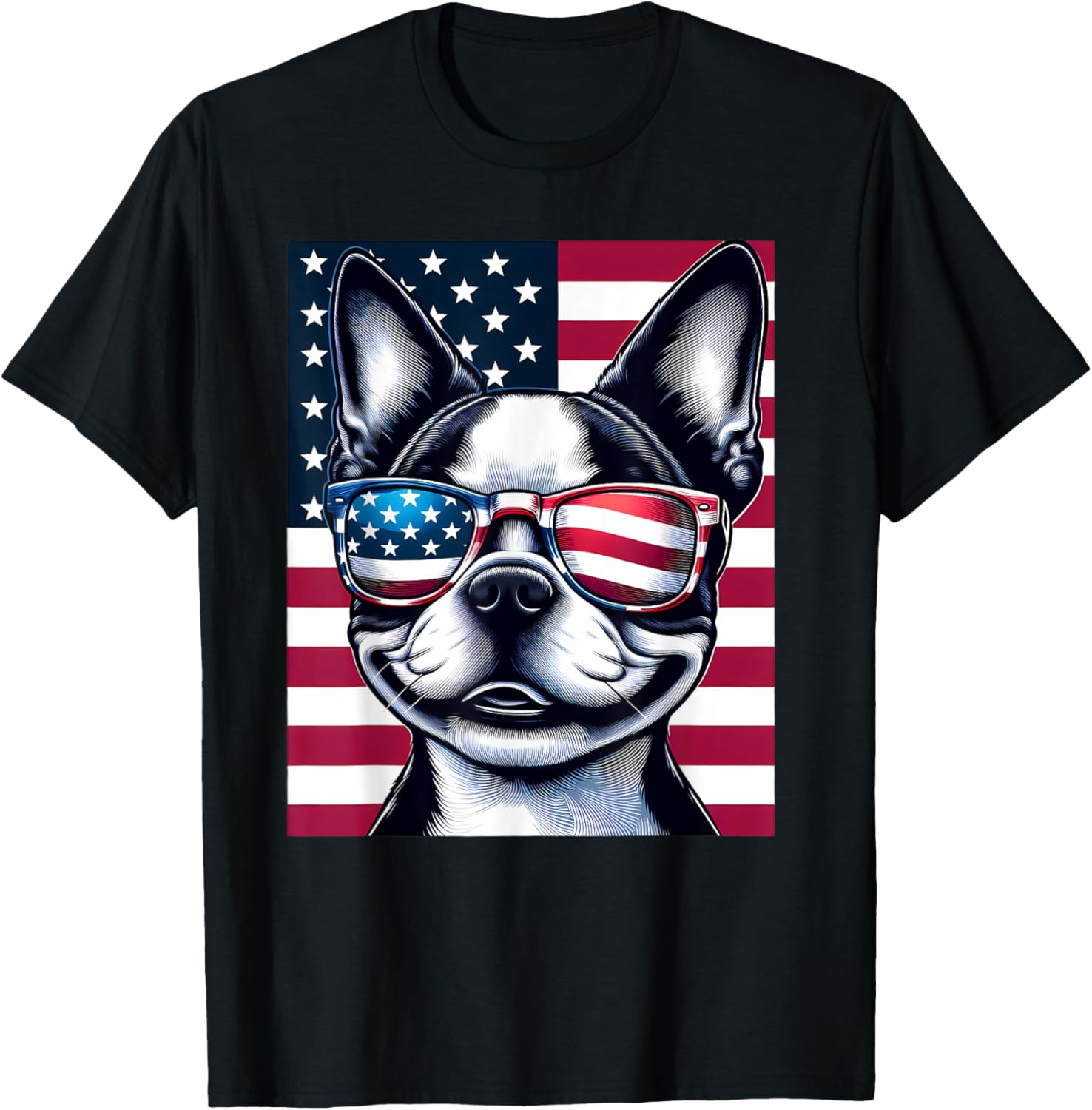 Boston Terrier Patriotic Sunglasess American Flag T-Shirt