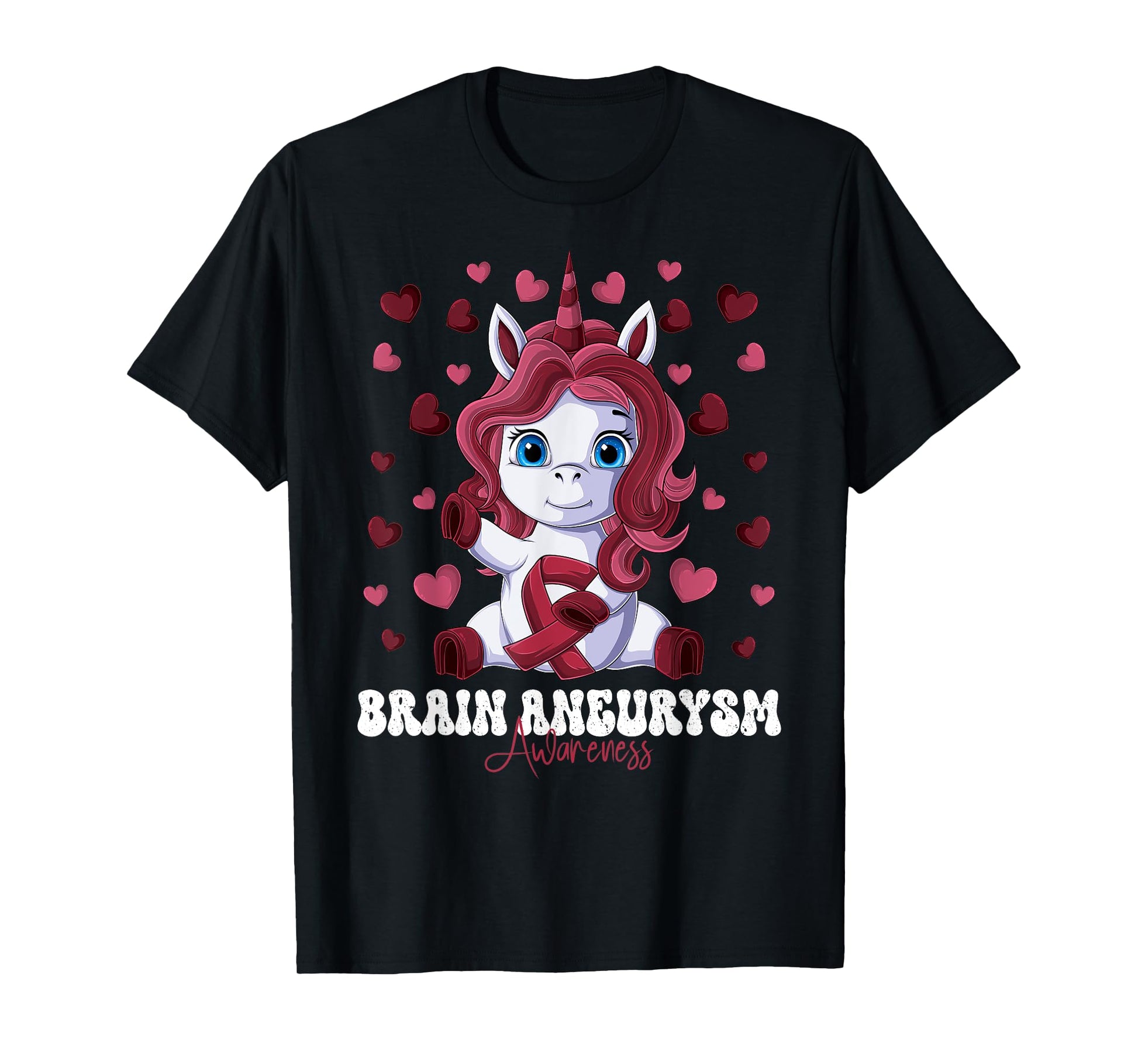 Brain Aneurysm Awareness Month Burgundy Ribbon Unicorn T-Shirt