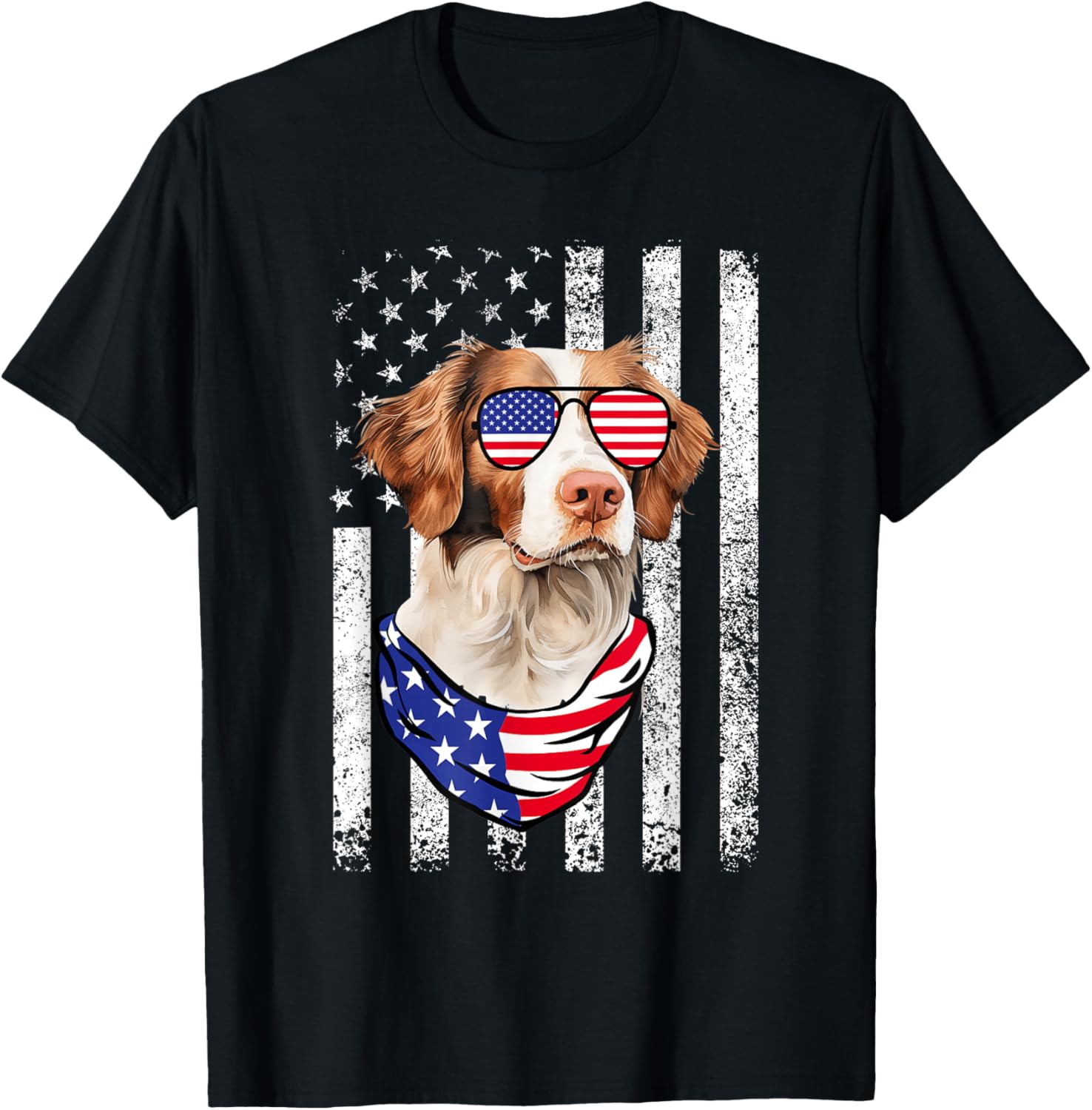 Brittany Spaniel American Flag USA Patriotic 4th of July T-Shirt