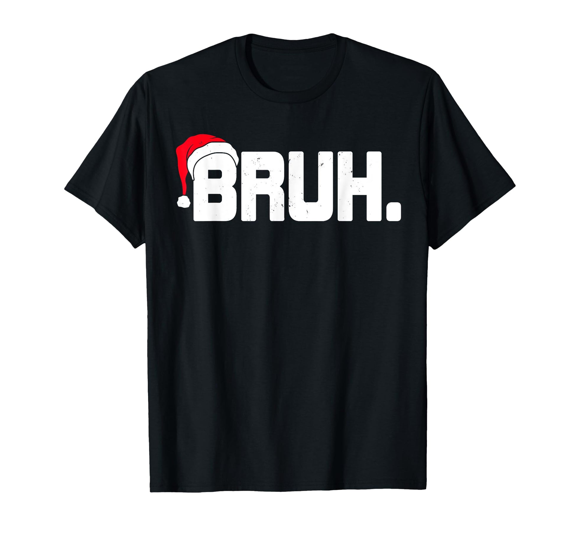 Bruh Meme Funny Christmas Holiday Teens Men Gifts Santa Hat T-Shirt