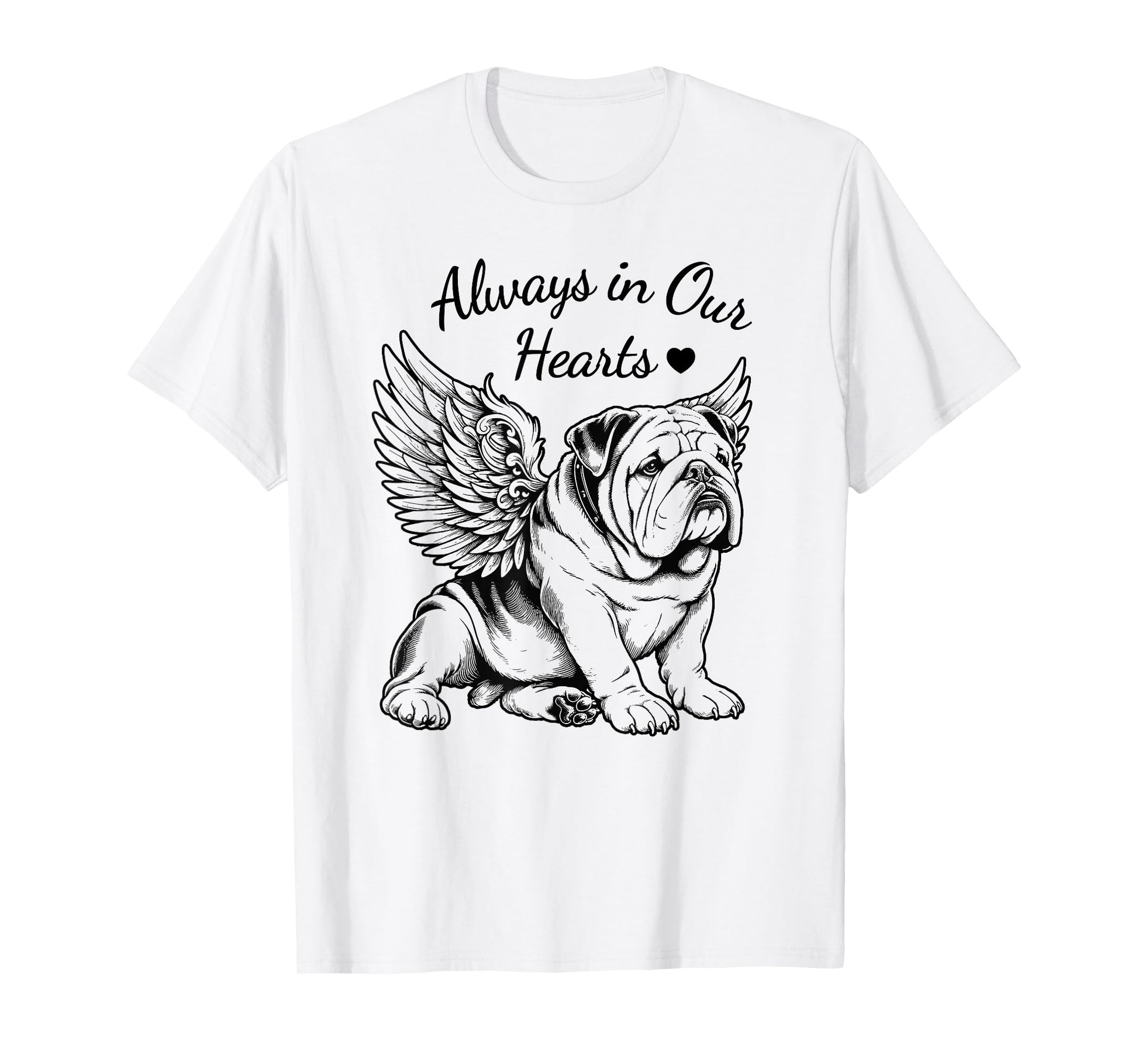 Bulldog Always in Our Hearts Angel Dog Pet Memorial T-Shirt for Men Women Kids