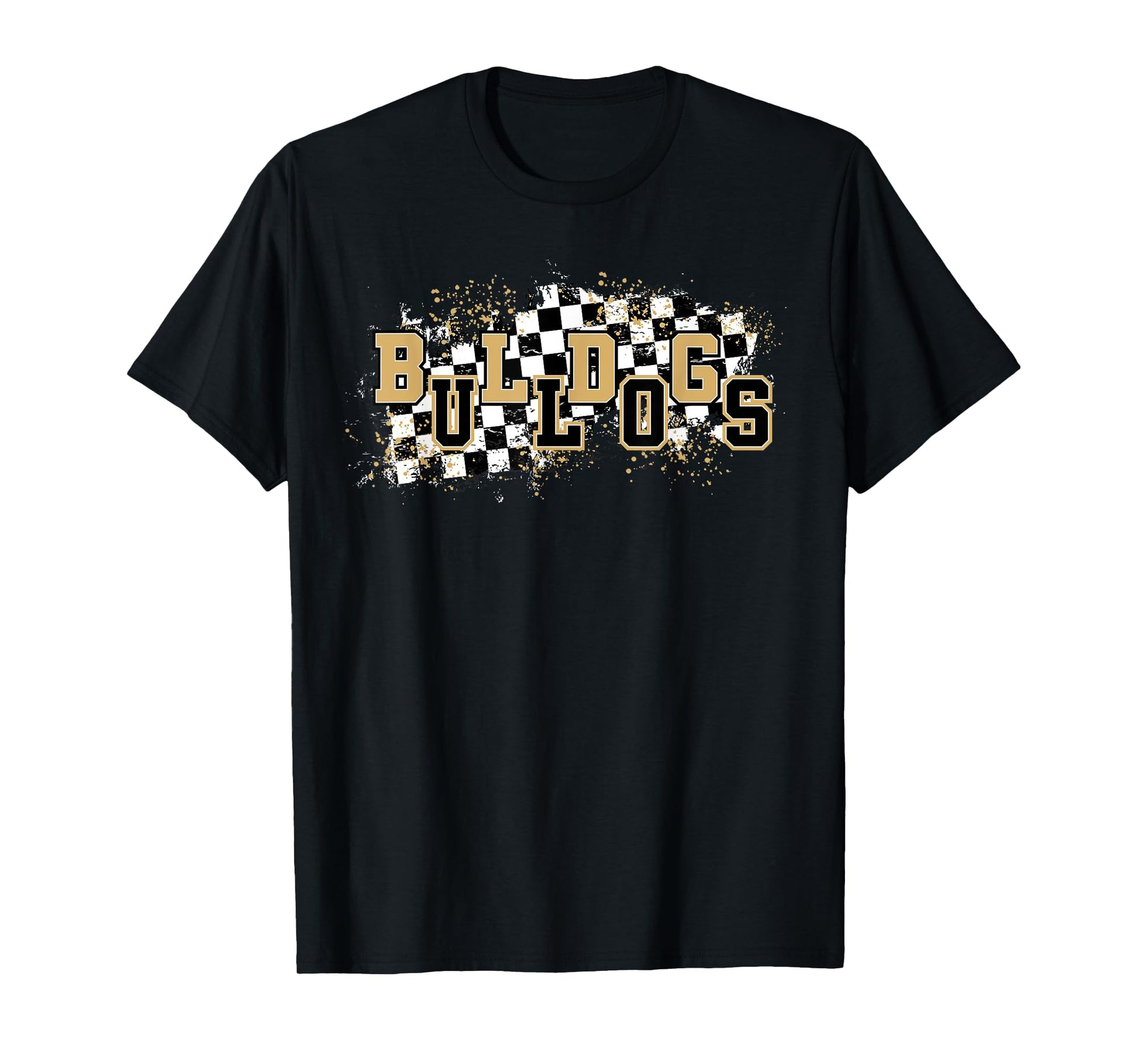 Bulldogs Checkered Print School Spirit Game Day Bulldog Gold T-Shirt
