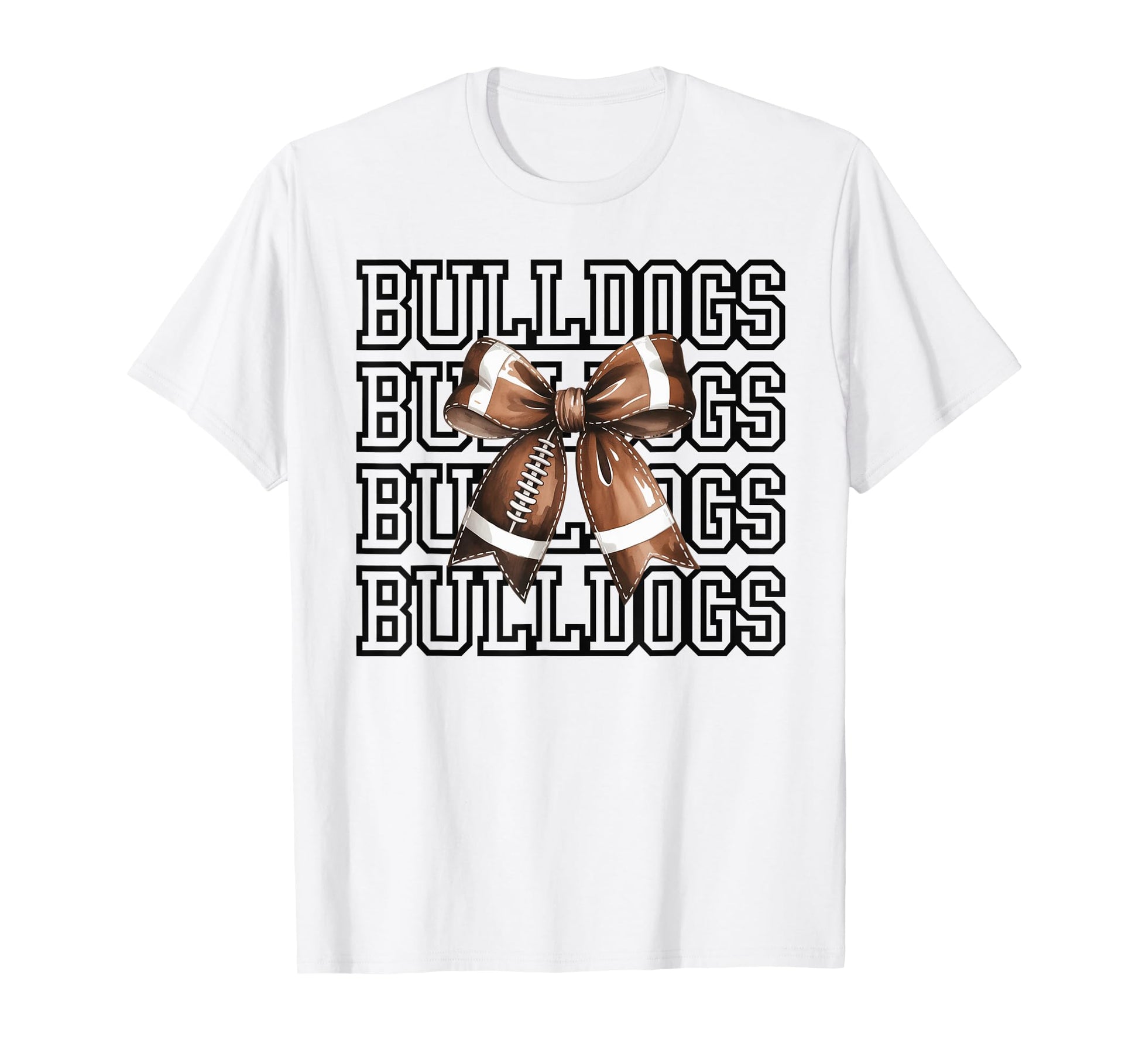 Bulldogs Football Mom Game Day Football Coquette Bow mascot T-Shirt