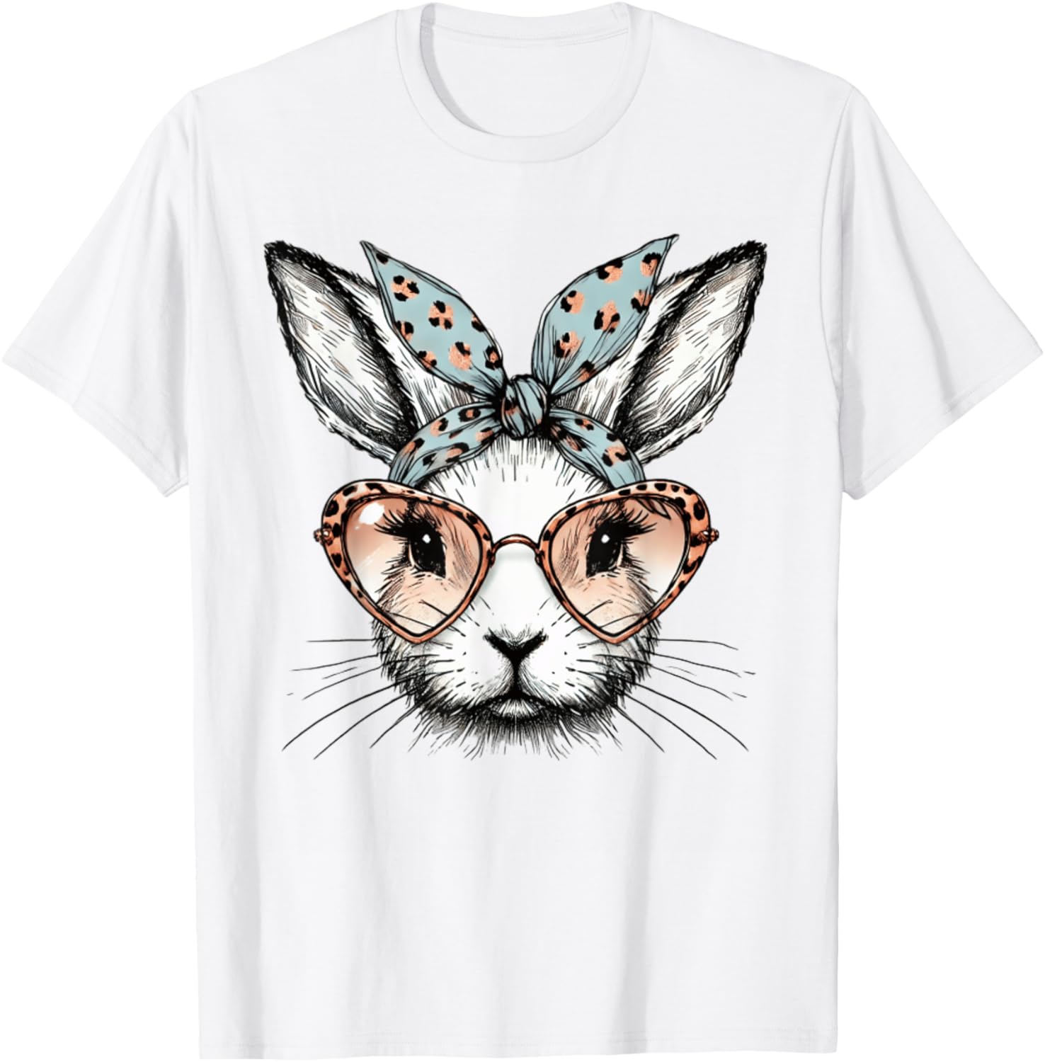 Bunny Face Easter Leopard Glasses Girls Women Cute Rabbit T-Shirt