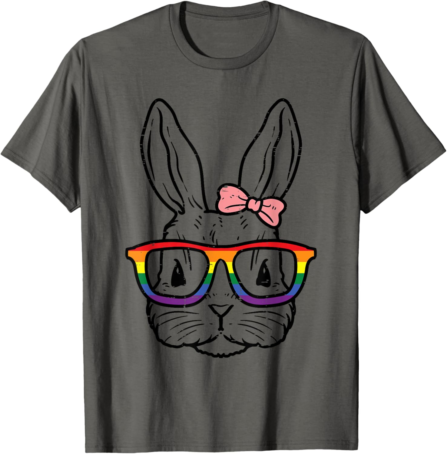 Bunny Rabbit Glasses Cute LGBTQ Rainbow Flag Gay Pride Ally T-Shirt