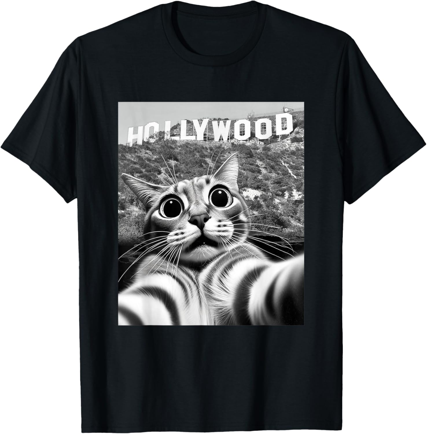 California Cat taking Selfie at Hollywood Sign Cat Selfie T-Shirt