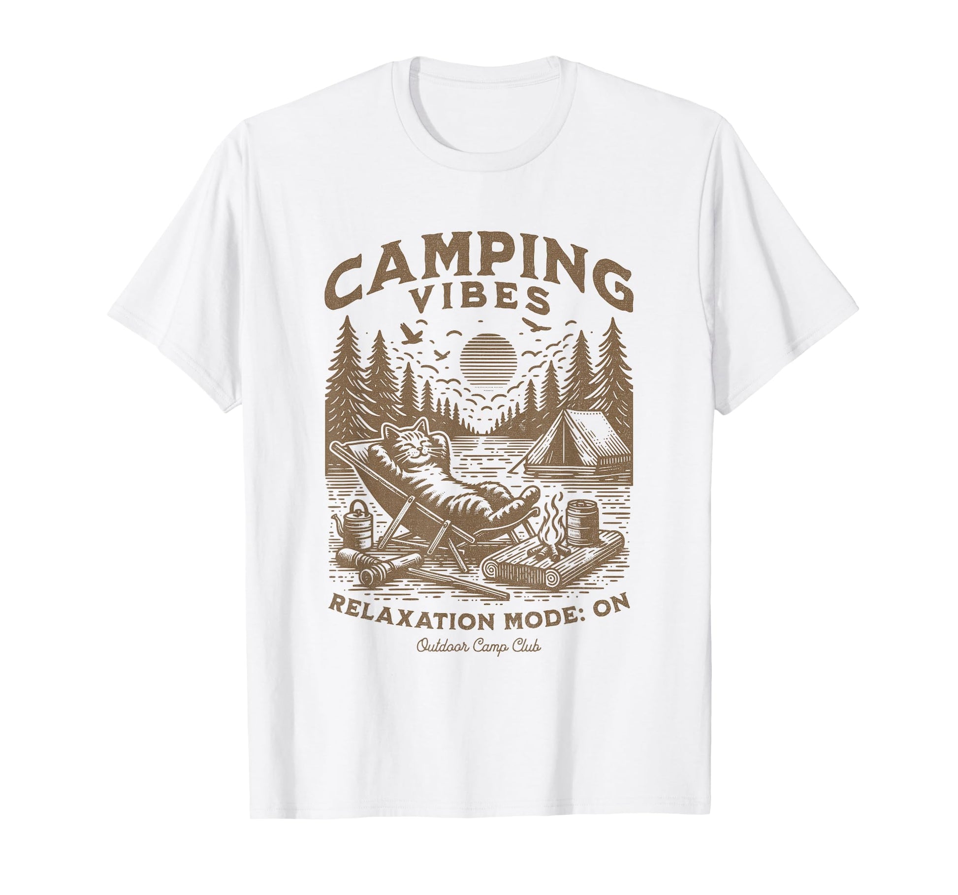 Camping Vibes Funny Cat Campfire Outdoor Nature Lovers Camp Men Women Kids T-Shirt