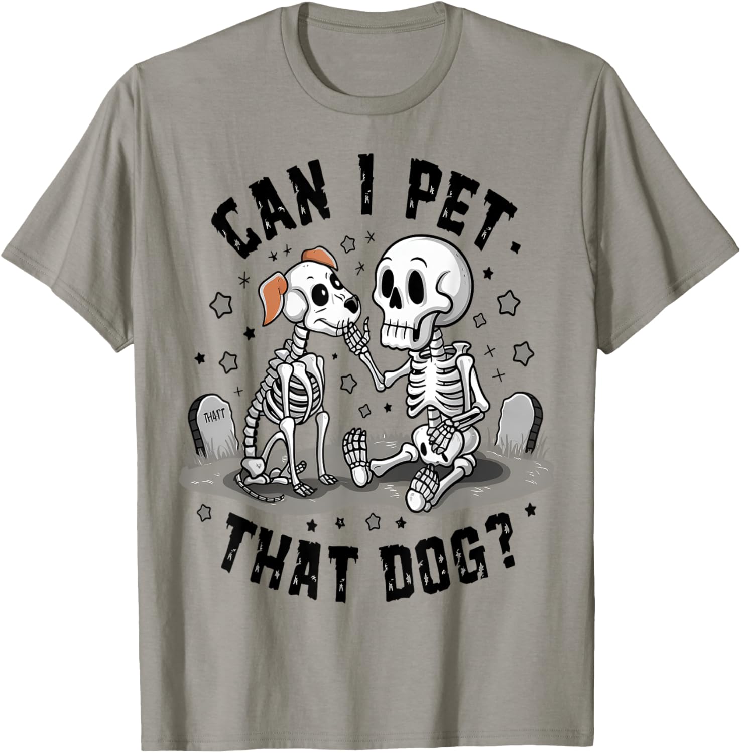 Can I Pet That Dog? Cute Skeleton & Ghost Dog Halloween Kids T-Shirt