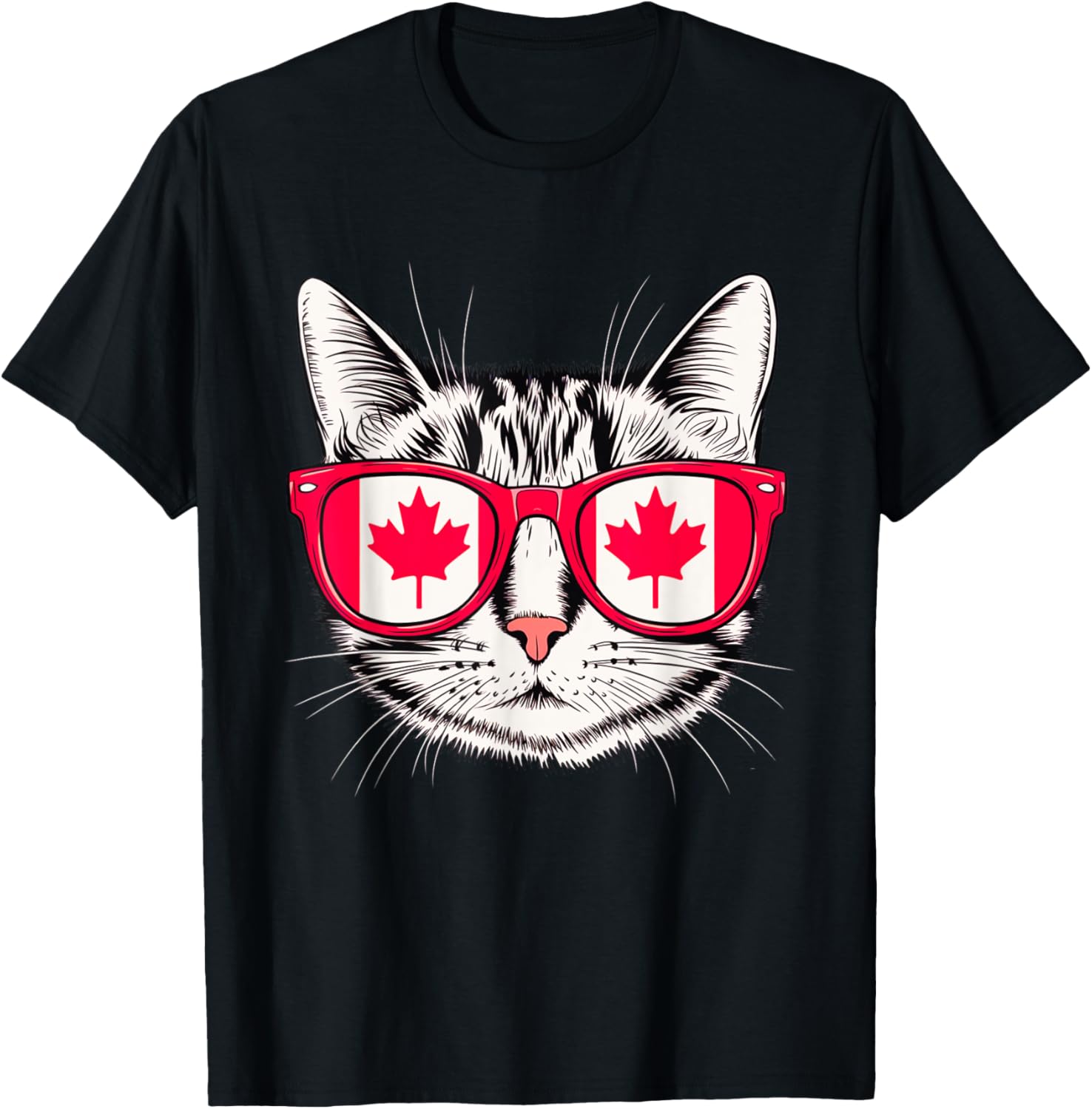 Canada Flag Cat Canadian Pride Sunglass Canada Maple Leaf T-Shirt
