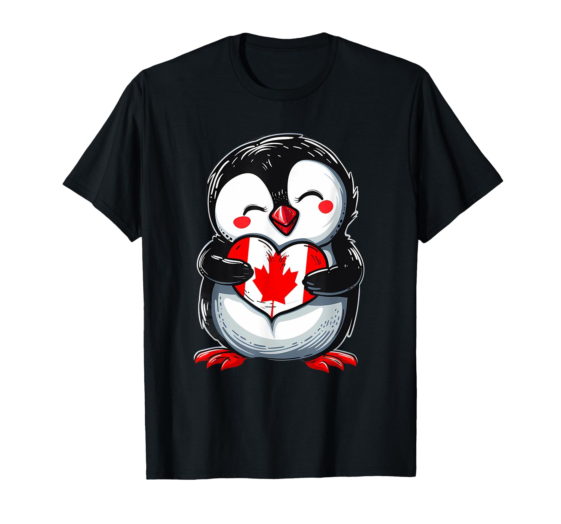 Canadian Pride Heart Penguin Canada Maple Leaf Canada Flag T-Shirt