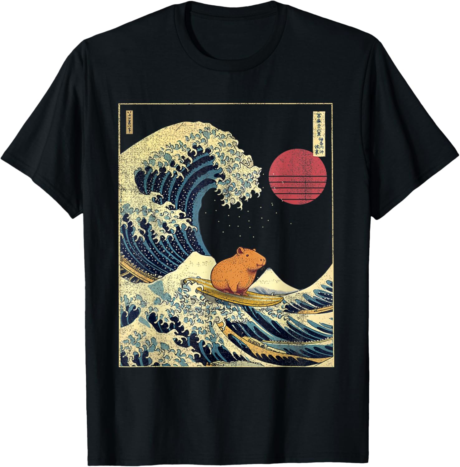 Capybara Japanese Kanagawa Wave Funny Surf Animal T-Shirt