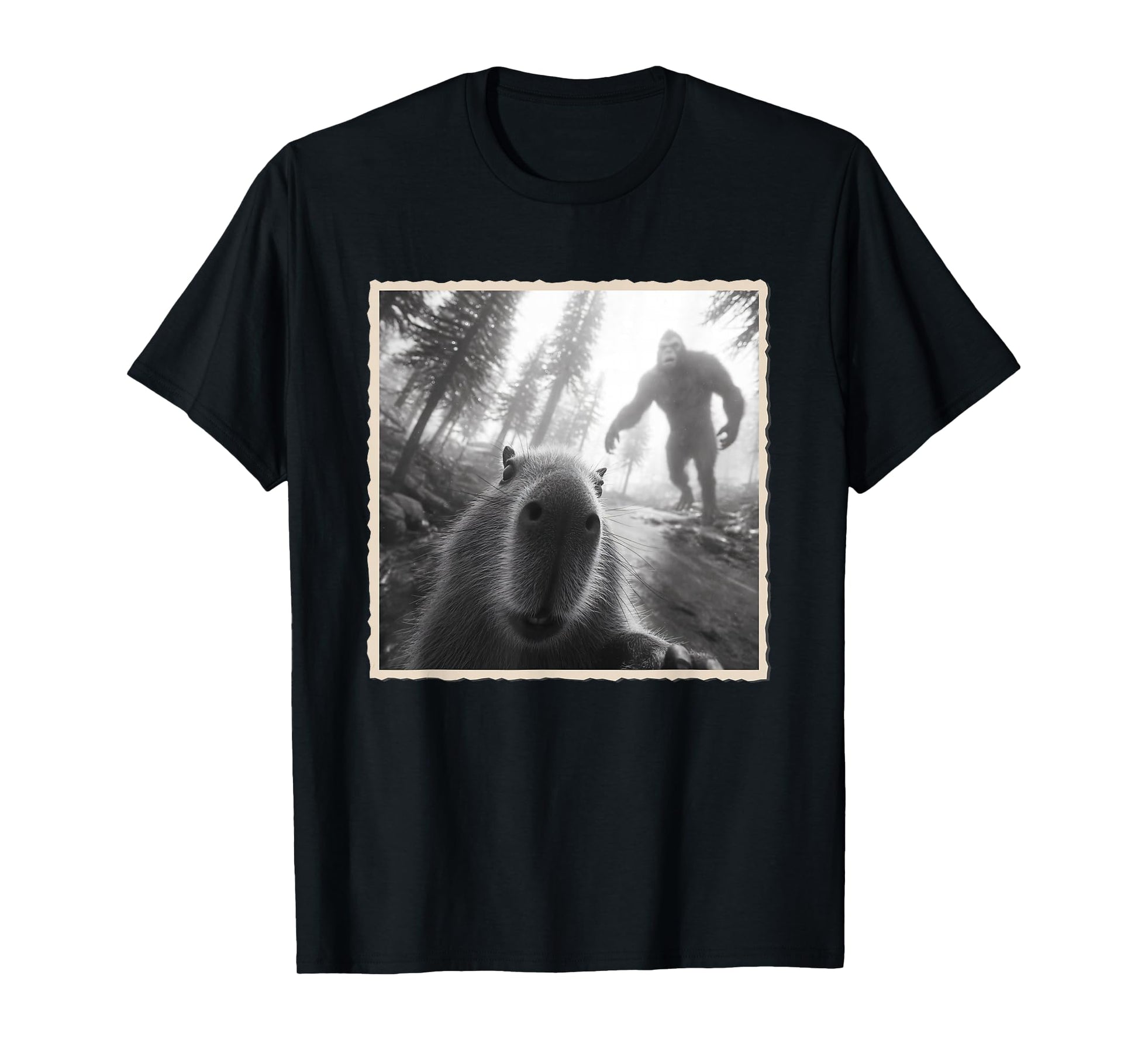 Capybara Scared Selfie With Bigfoot & Funny Sasquatch T-Shirt