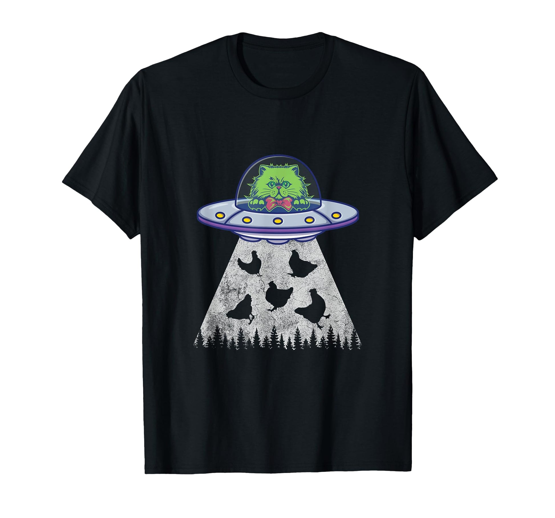 Cat Abduction Chicken Funny UFO Alien Lover Vintage Distress T-Shirt