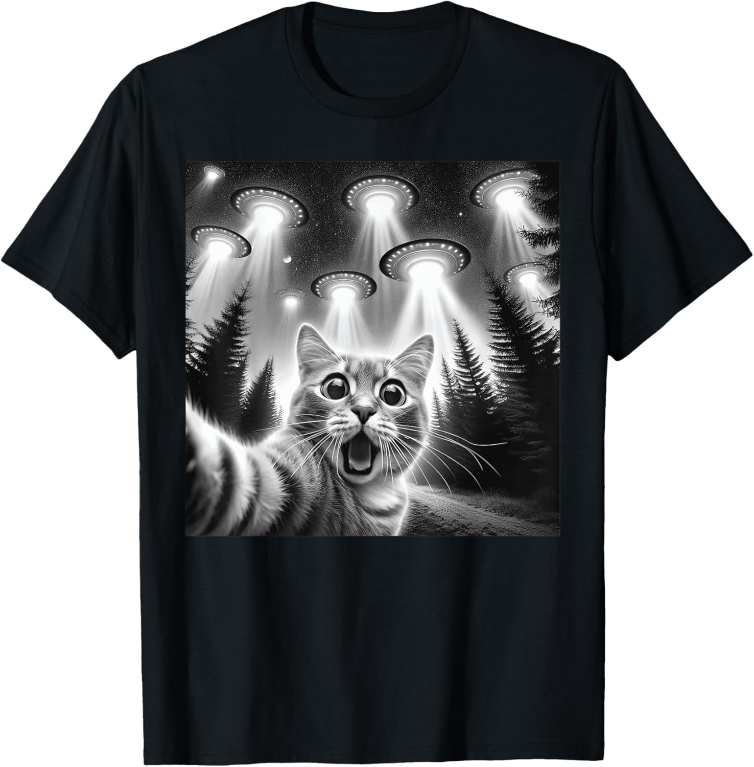 Cat Selfie With Alien UFO Funny Cat Gifts for Men Women Kid T-Shirt