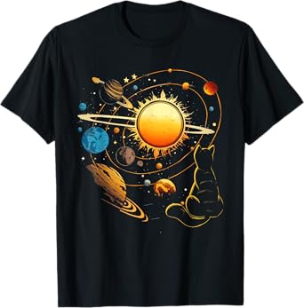 Cat And Planets - Galaxy Stars Kitten Kitty Animal Pet Lover Men Women Kids T-Shirt