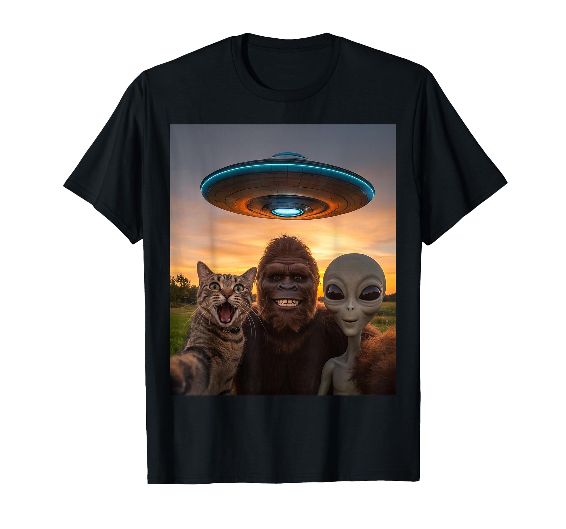 Cat Bigfoot Alien Selfie BFF Funny Photo With UFO T-Shirt