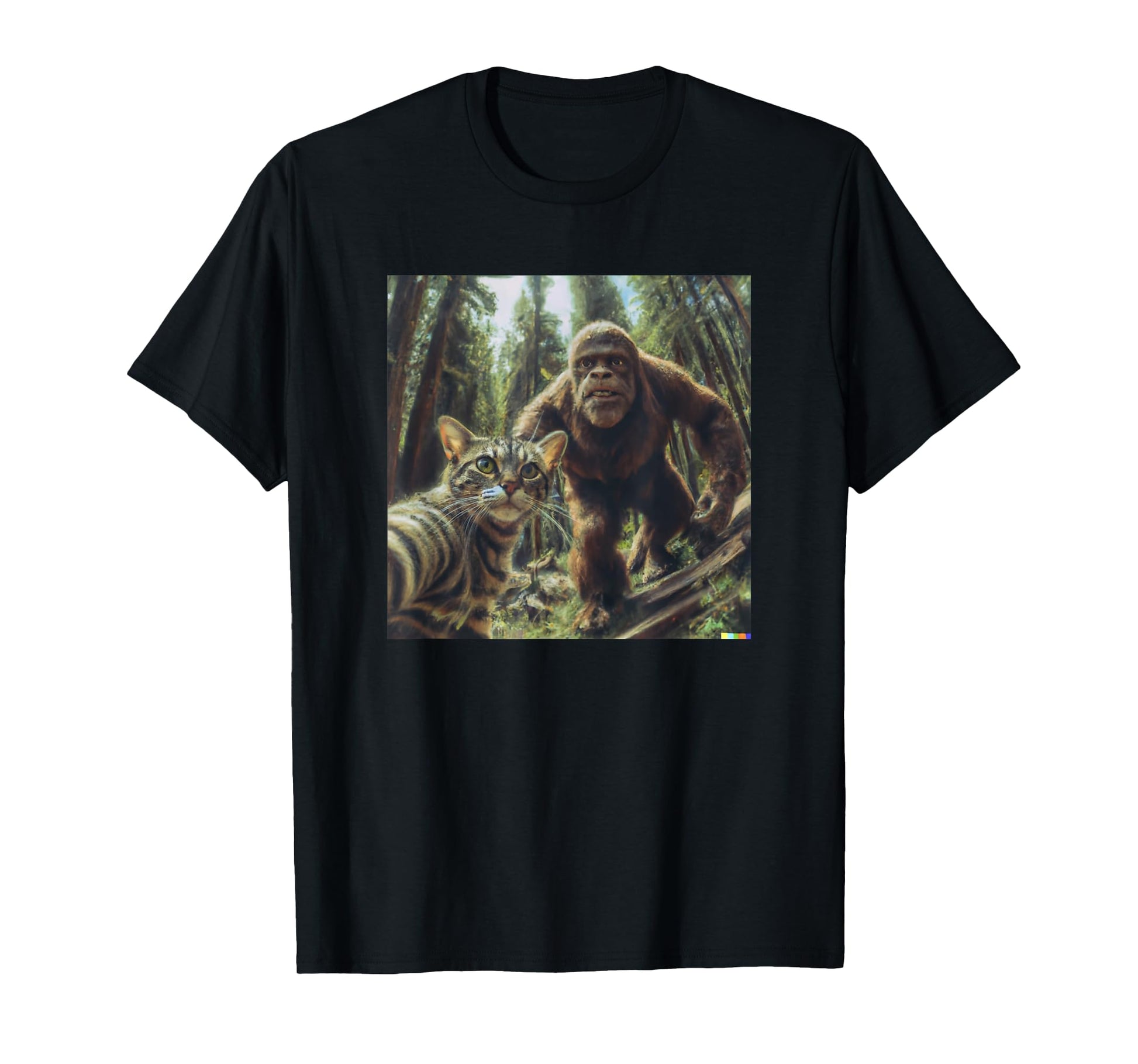 Cat Bigfoot Sasquatch Selfie Photo Funny Retro Classic Humor Men Women Girls Kids T-Shirt