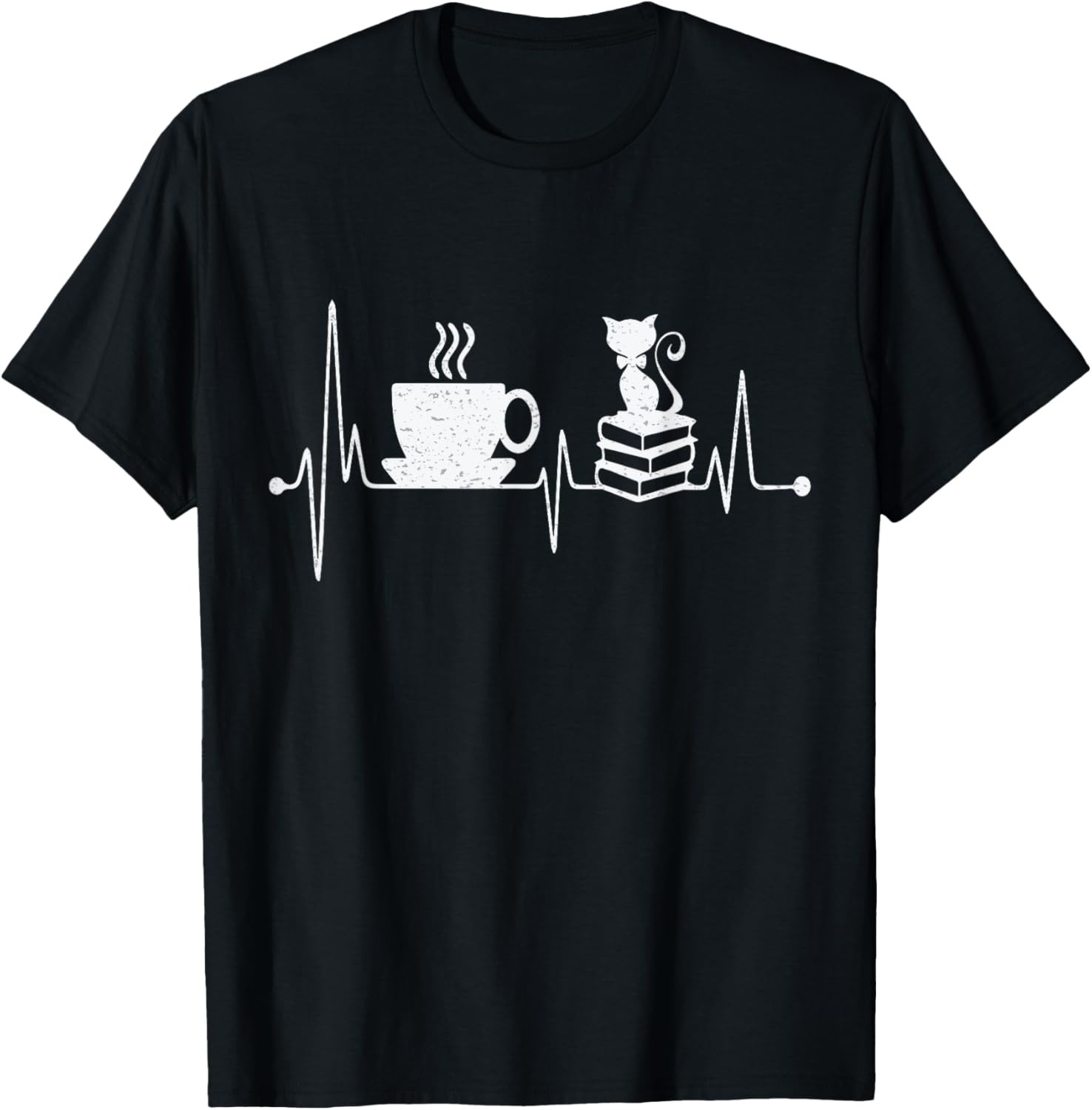 Cat Book Coffee Lover Heartbeat Cat Lover Book Lover T-Shirt
