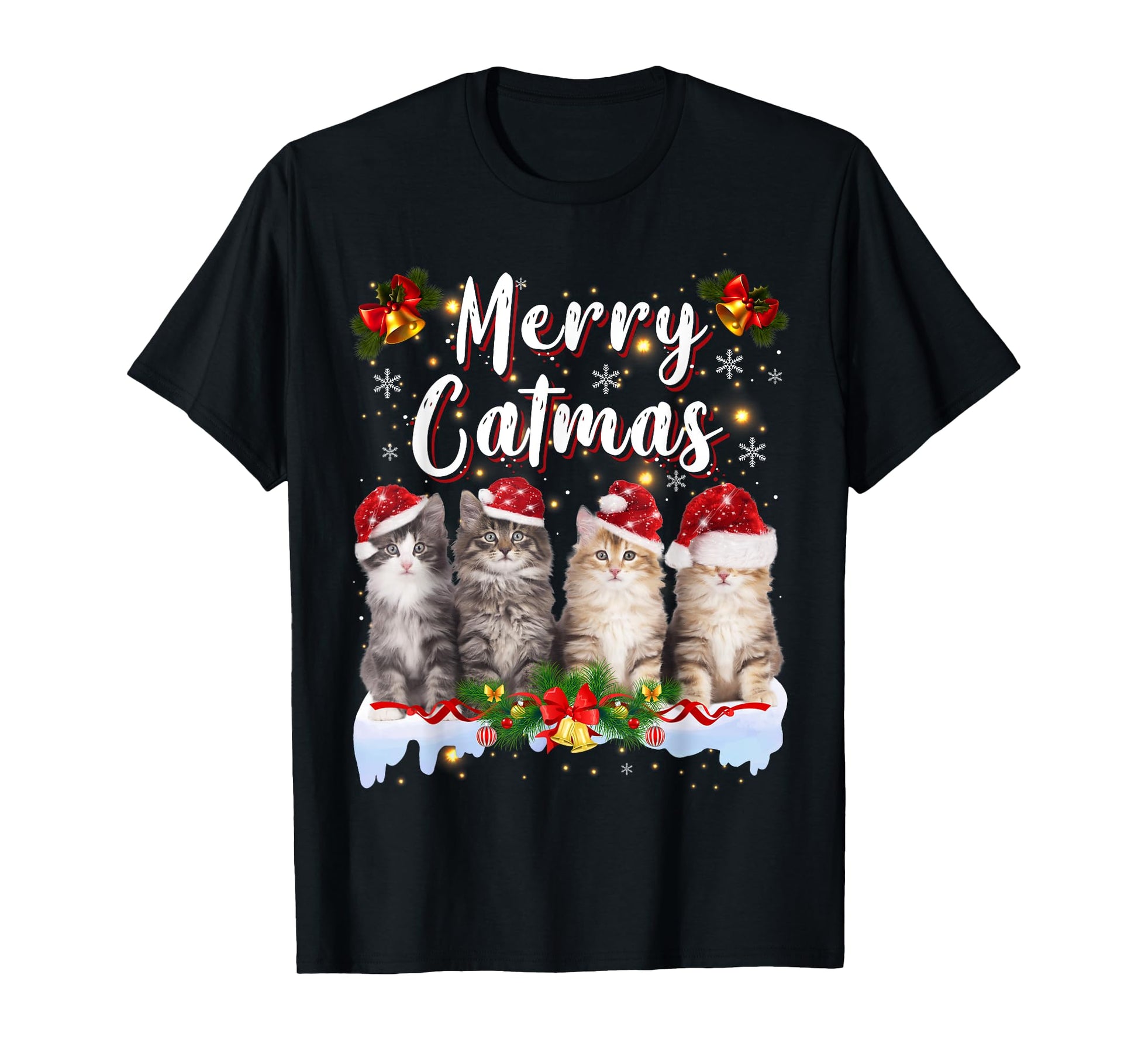 Cat Christmas Santa Hat Funny Merry Catmas Meowy Men Women T-Shirt