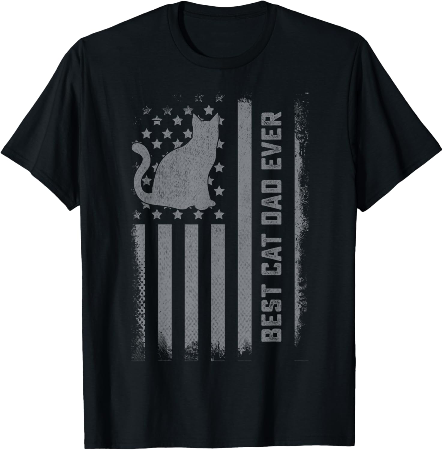 Men's Cat Dad US Flag Kitty Daddy Dad Christmas Fathers Day T-Shirt