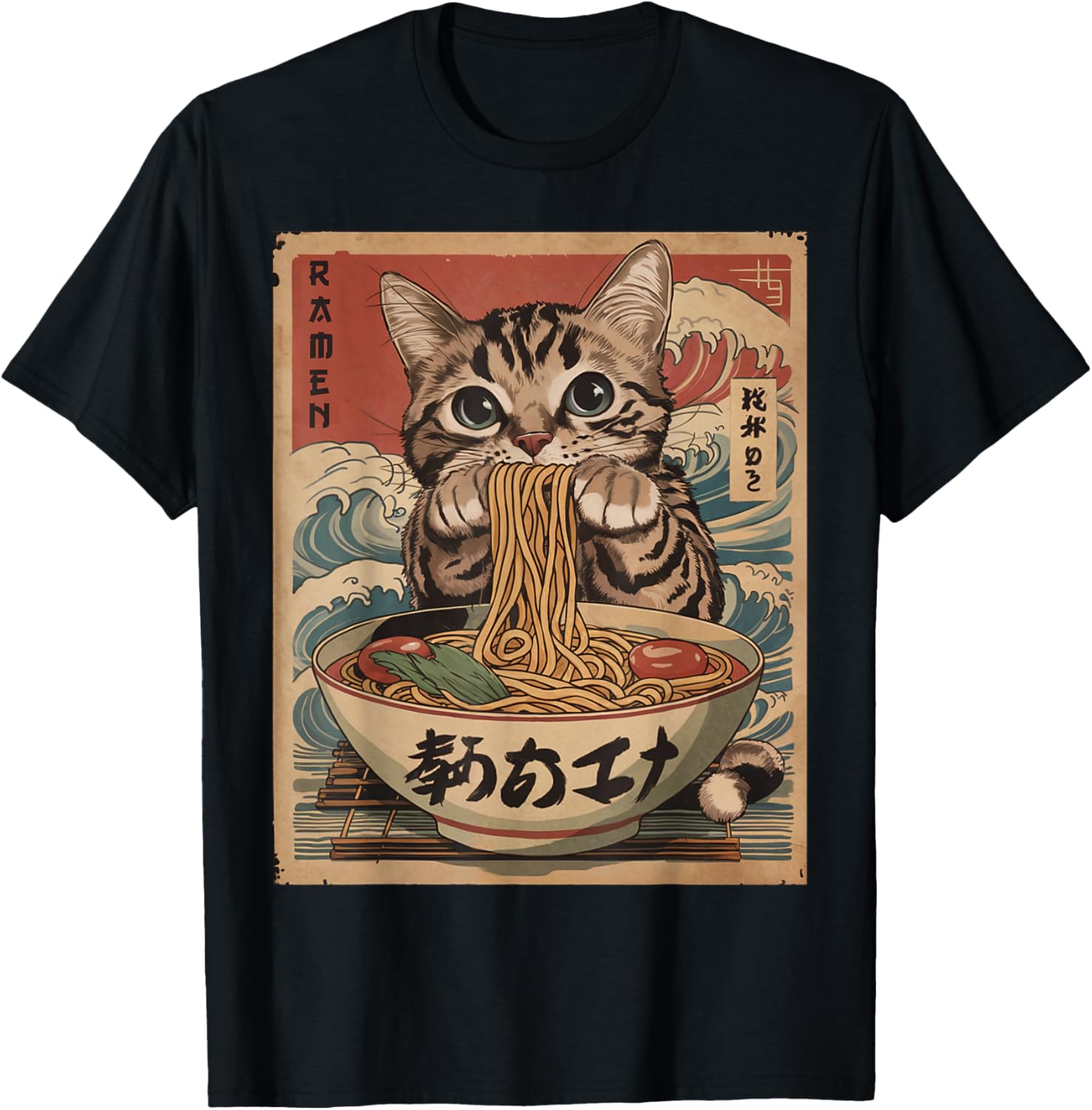Cat Eating Ramen Noodles Kawaii Anime Manga Japanese Food T-Shirt