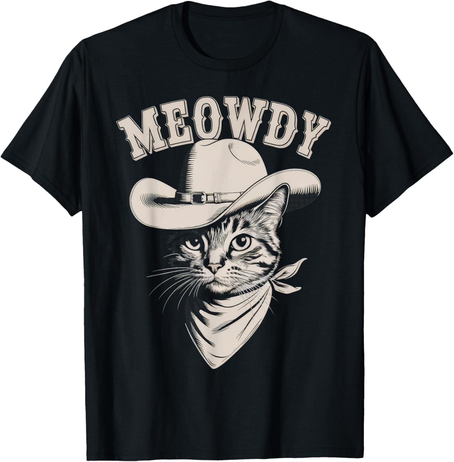 Meowdy Cat Funny Cowboy Western Graphic Cat Lady Cat Dad T-Shirt