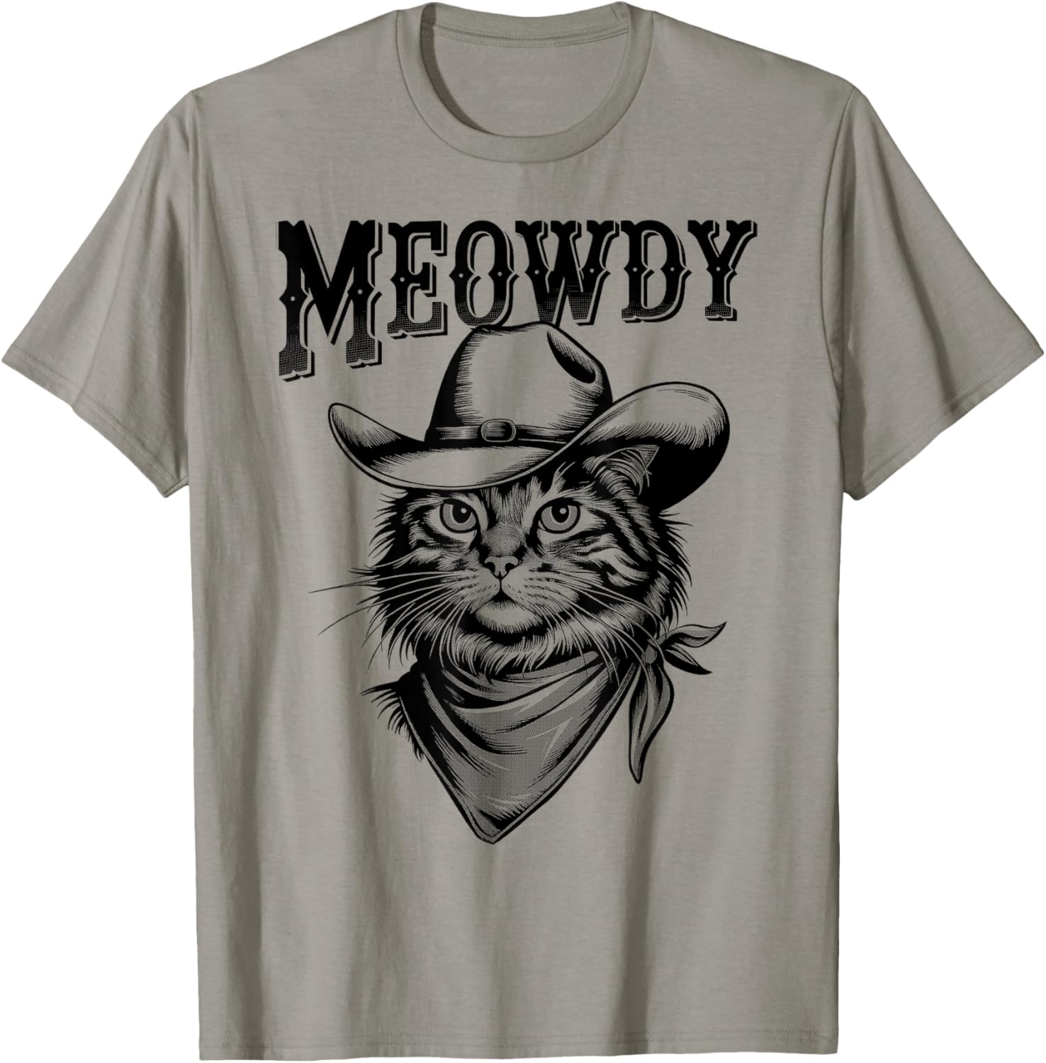 Meowdy Cat Funny Cowboy Western Graphic Cat Lady Cat Dad T-Shirt