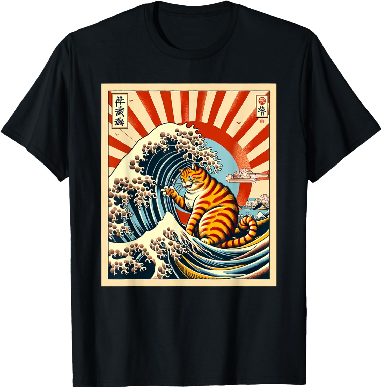 Catzilla Cat Japanese Art The Great Wave off Kanagawa Cat T-Shirt