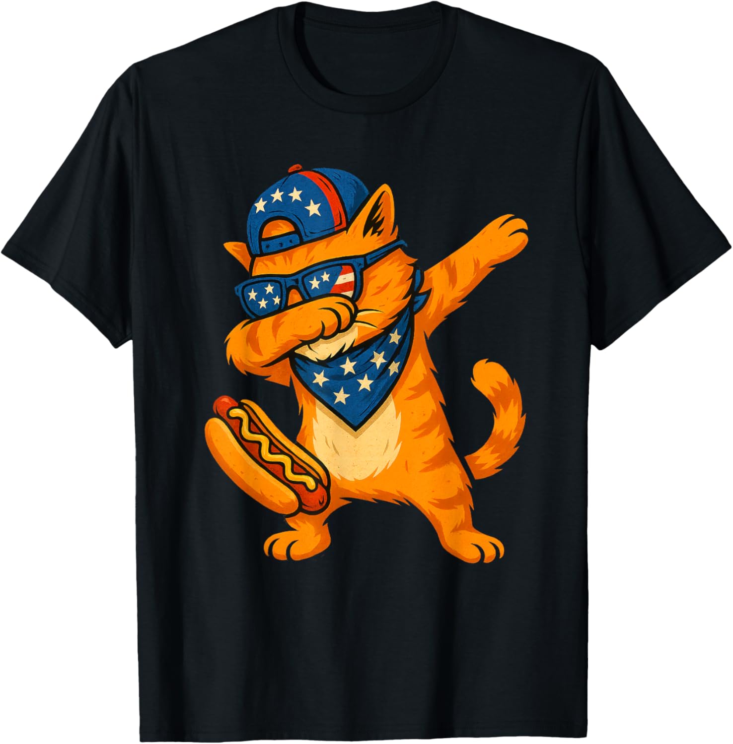 Cat 4th Of July Hotdog Patriotic Dabbing Cat American Flag T-Shirt