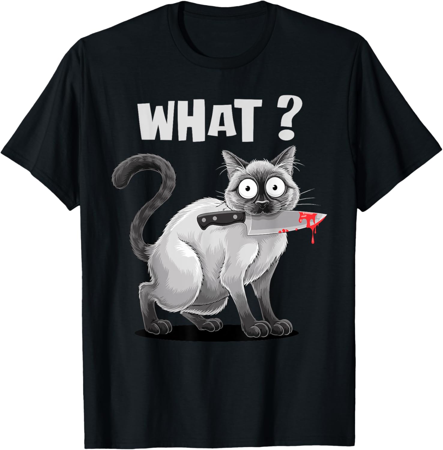 Cat with Knife Funny Cats Meme Tee Cat What? Sarcastic Humor T-Shirt