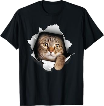 Cat Looking Through Hole - Cat Lover Kitten Owner Kitty T-Shirt for Men Women Kids