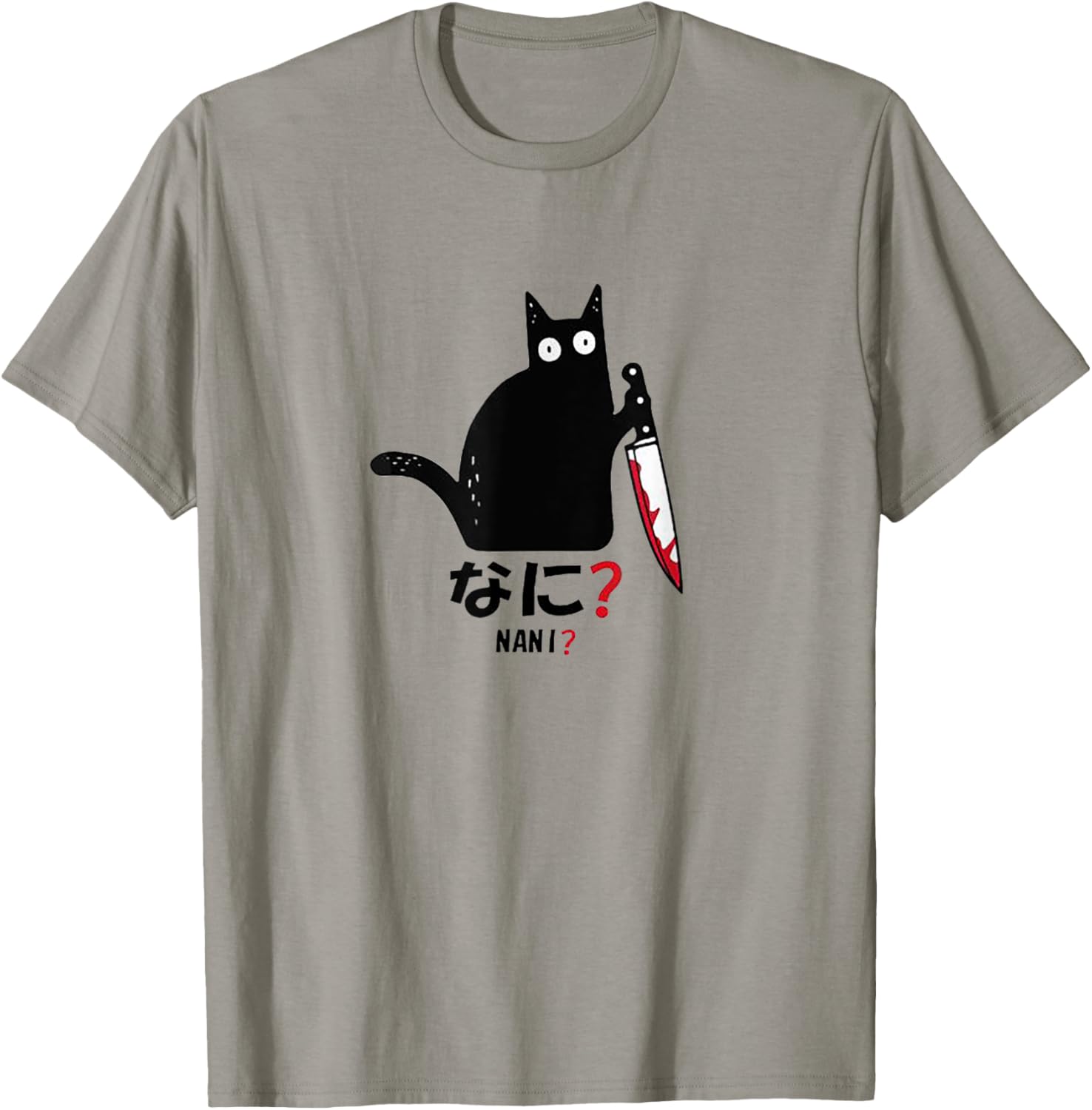 Cat Nani? What? Murderous Black Cat With Knife Japannese T-Shirt