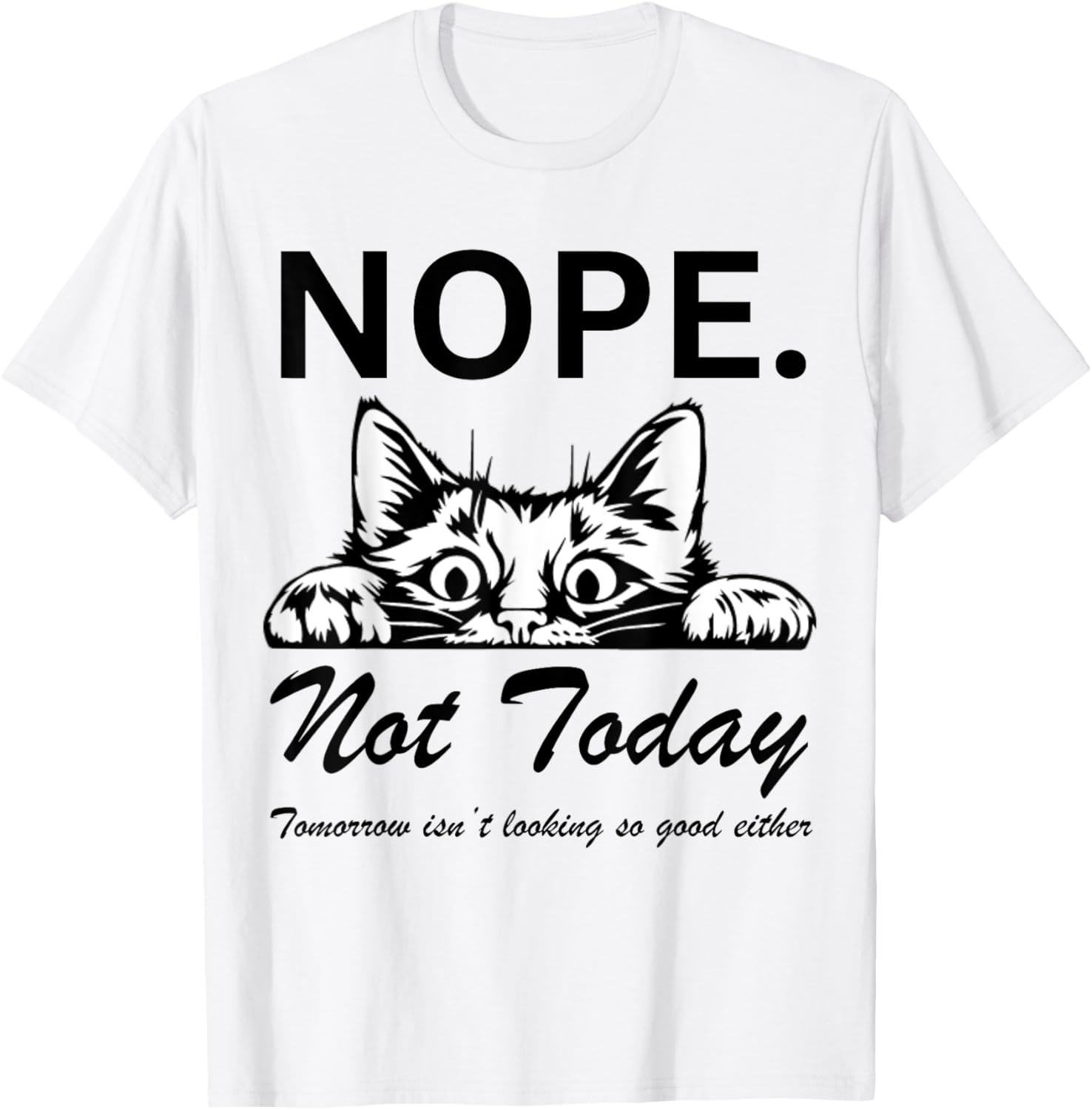 Nope Not Today Cat Peeking Funny Casual Wear T-Shirt