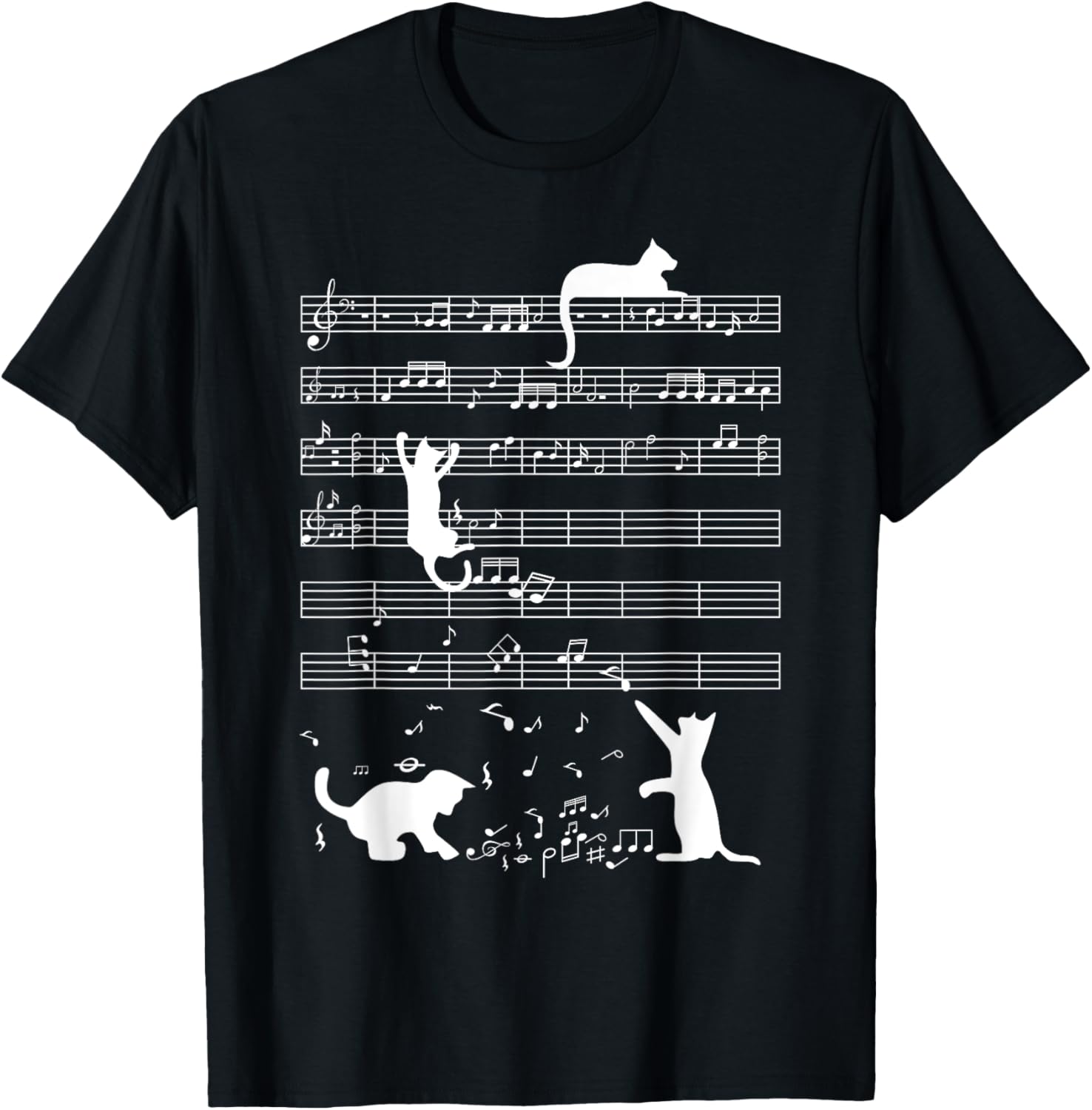Cute Cat Kitty Playing Music Note Funny Clef Musician Art T-Shirt