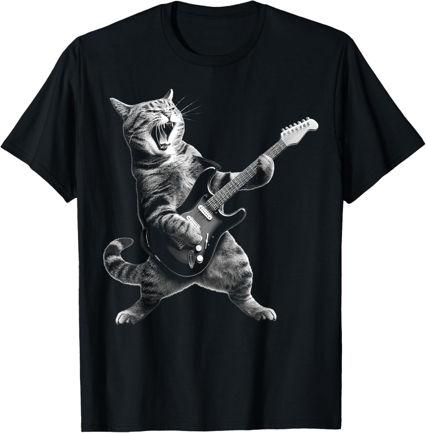Cat Playing Guitar Rock and Roll Rock Star For Men Women Kid T-Shirt