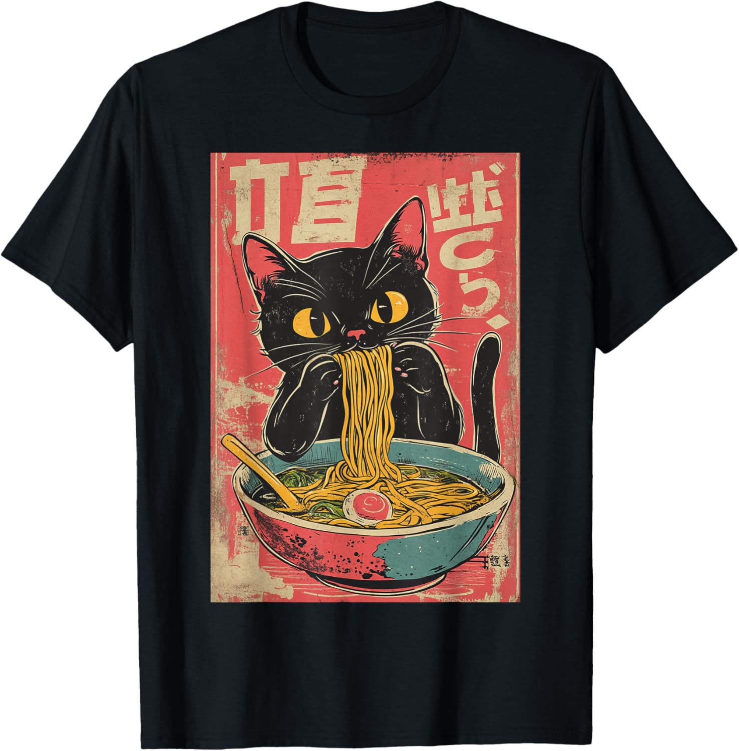 Cat Ramen Anime Japanese Funny Graphic Tees Kawaii T-Shirt