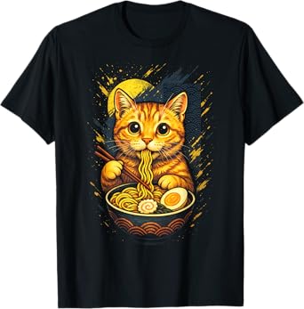 Cat Ramen Noodles Food Anime Orange Kawaii Sushi T-Shirt