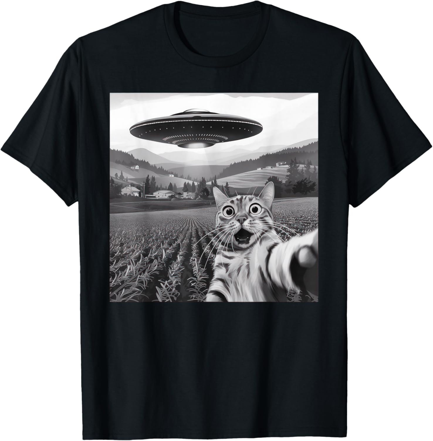 Cat Selfie With Alien UFO Cat Gifts For Men Women Kid T-Shirt