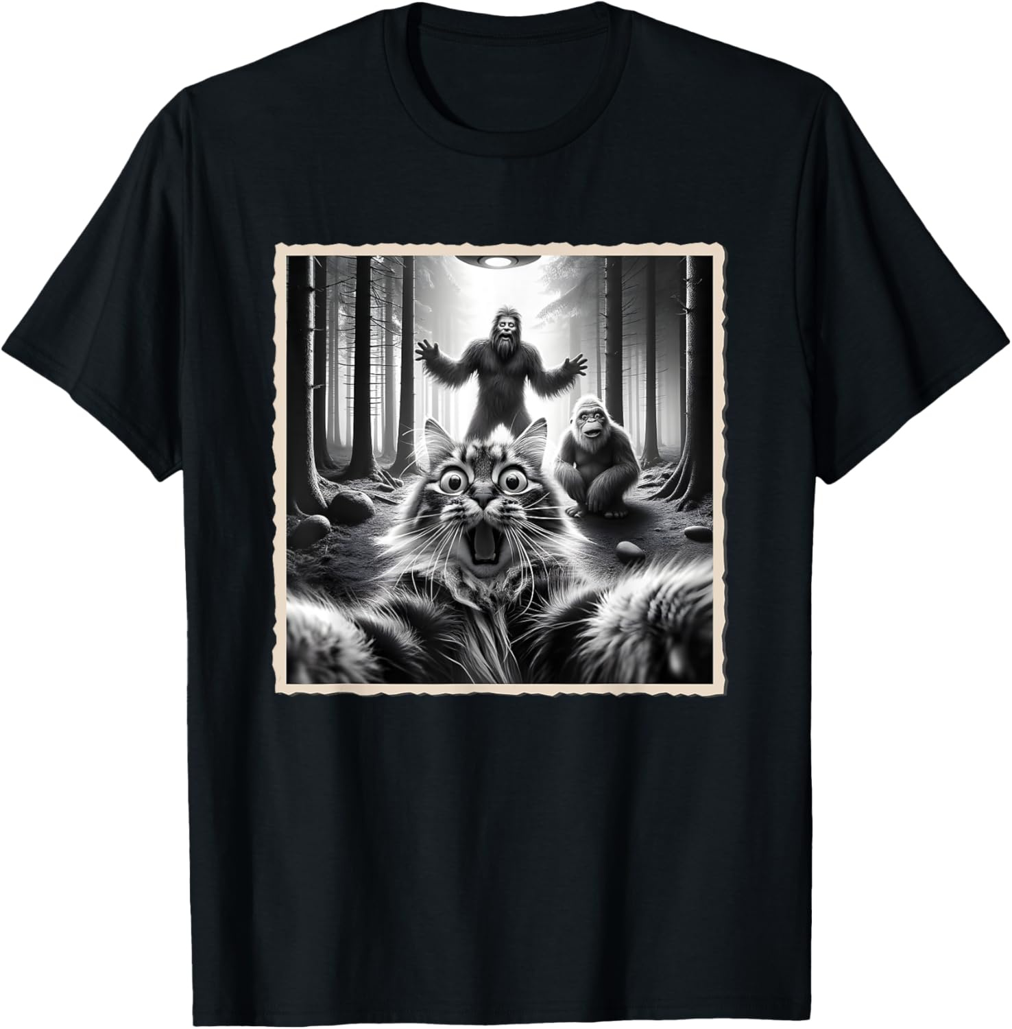 Cat Selfie With Bigfoot; Funny Sasquatch & Cat T-Shirt